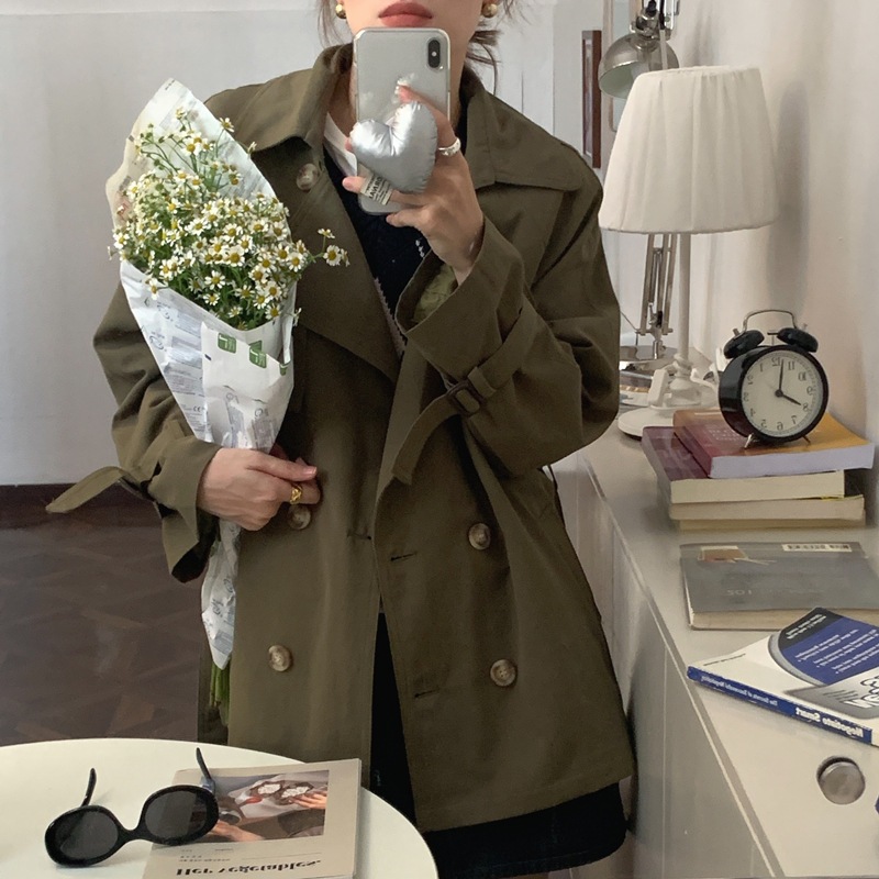 韓国のファッションカジュアルな雰囲気のレトロな襟のダブルボタンのストラップがゆったりしています