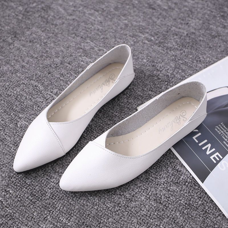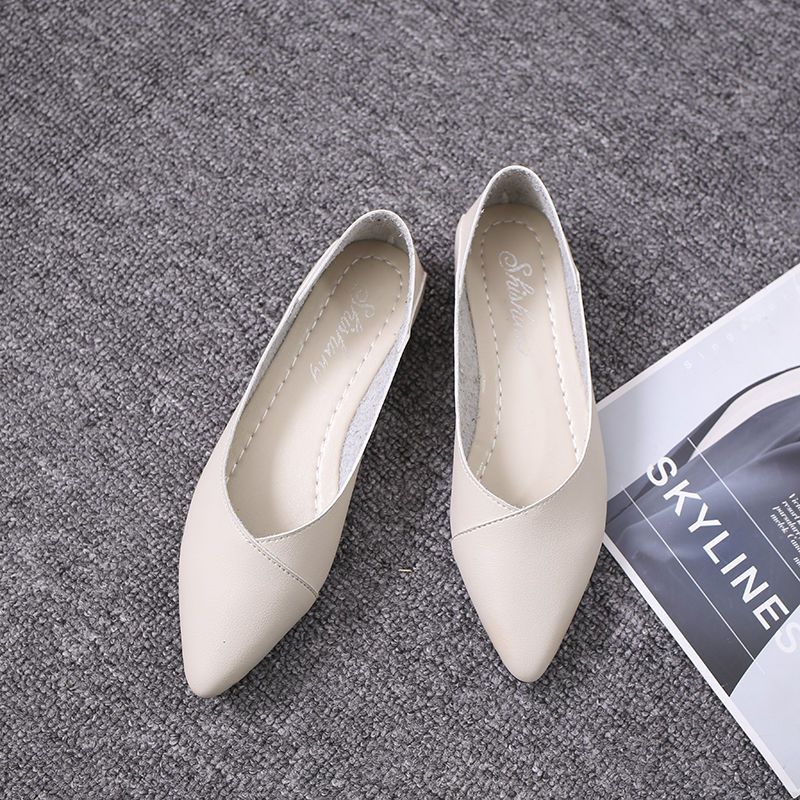 シングルシューズのソフトレザーフラットポインテッドトゥ百カジュアルシューズ快適で便利なモカシン フラットパンプス スタイルアップヒールパンプス
