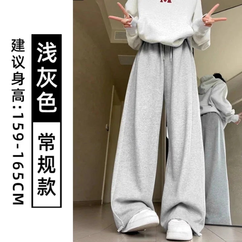 灰色のスポーツズボンの女性の春と秋の2024の新型のゆったりした大きいサイズのストレートの広腿のズボンのアメリカ式のカジュアルな足の衛のズボン