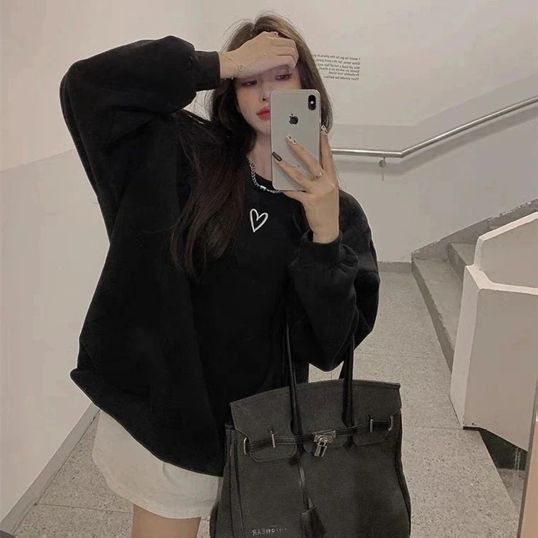 2枚100新作 ラウンドネックスウェット 韓国ファッション ゆったり パーカー 流行り カジュアル着痩せ 長袖トップス 百掛け ハート スウェット 学生 無地 トレーナー