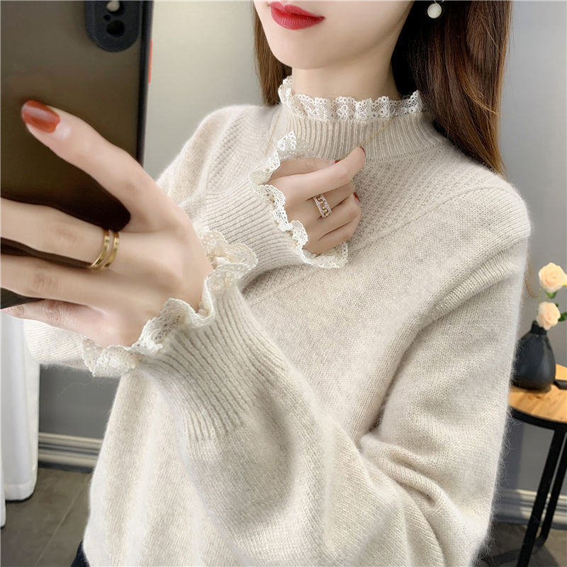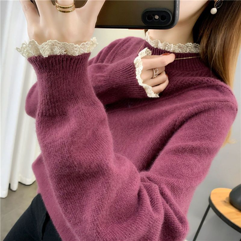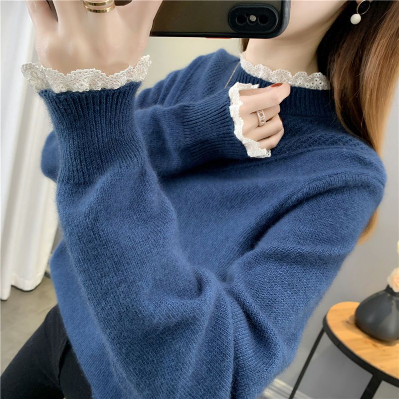 レーストリムニット ニット ハイネックニット レディース トップス インナー レース あったかインナー クルーネック あったか 長袖 ハイネック 暖かい 秋冬 肌着 防寒 寒さ対策 大人可愛い