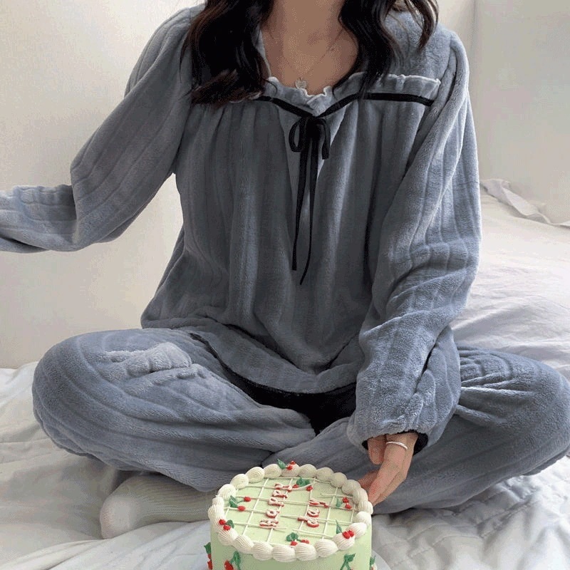 【 秋冬新作】コーラルフリースパジャマ レディース 長袖フランネル 加厚保暖 春秋冬ホームウェアセット