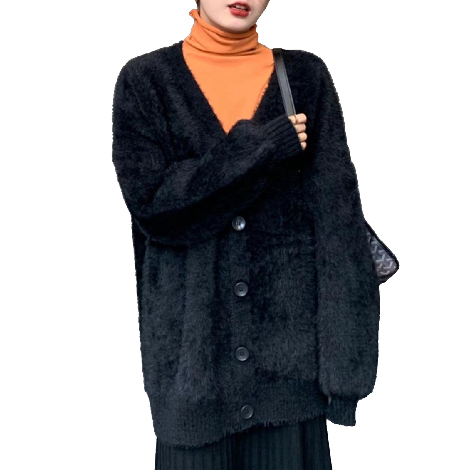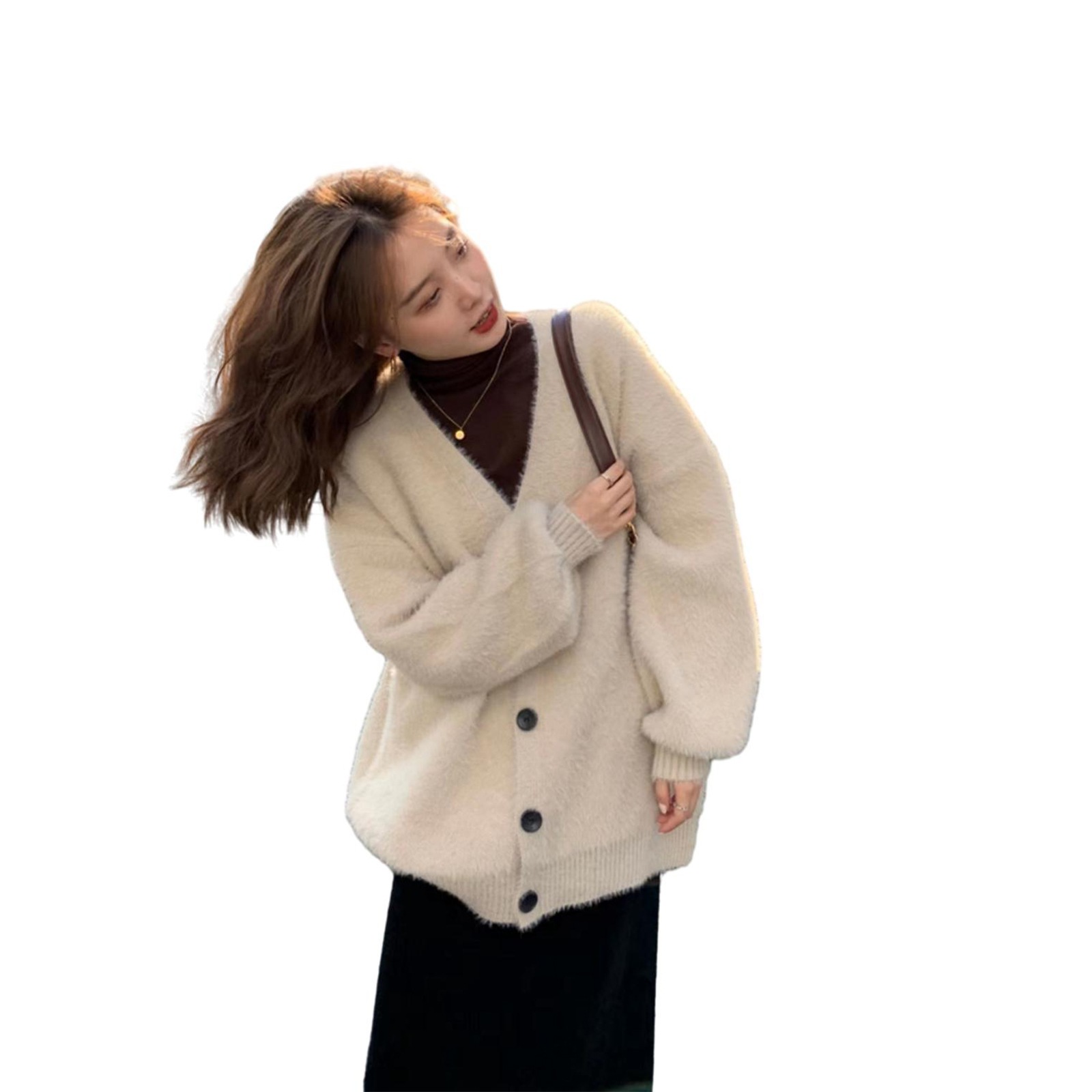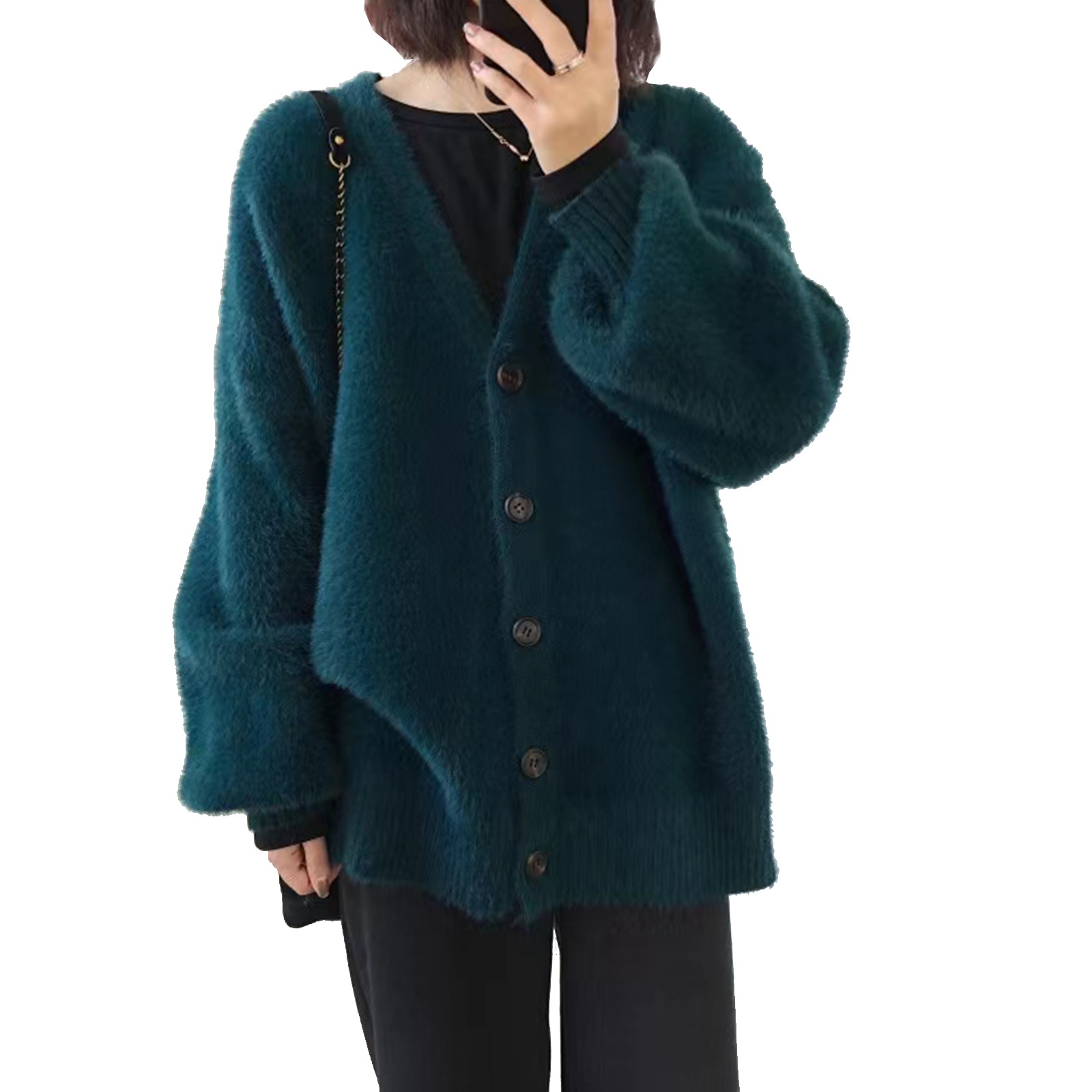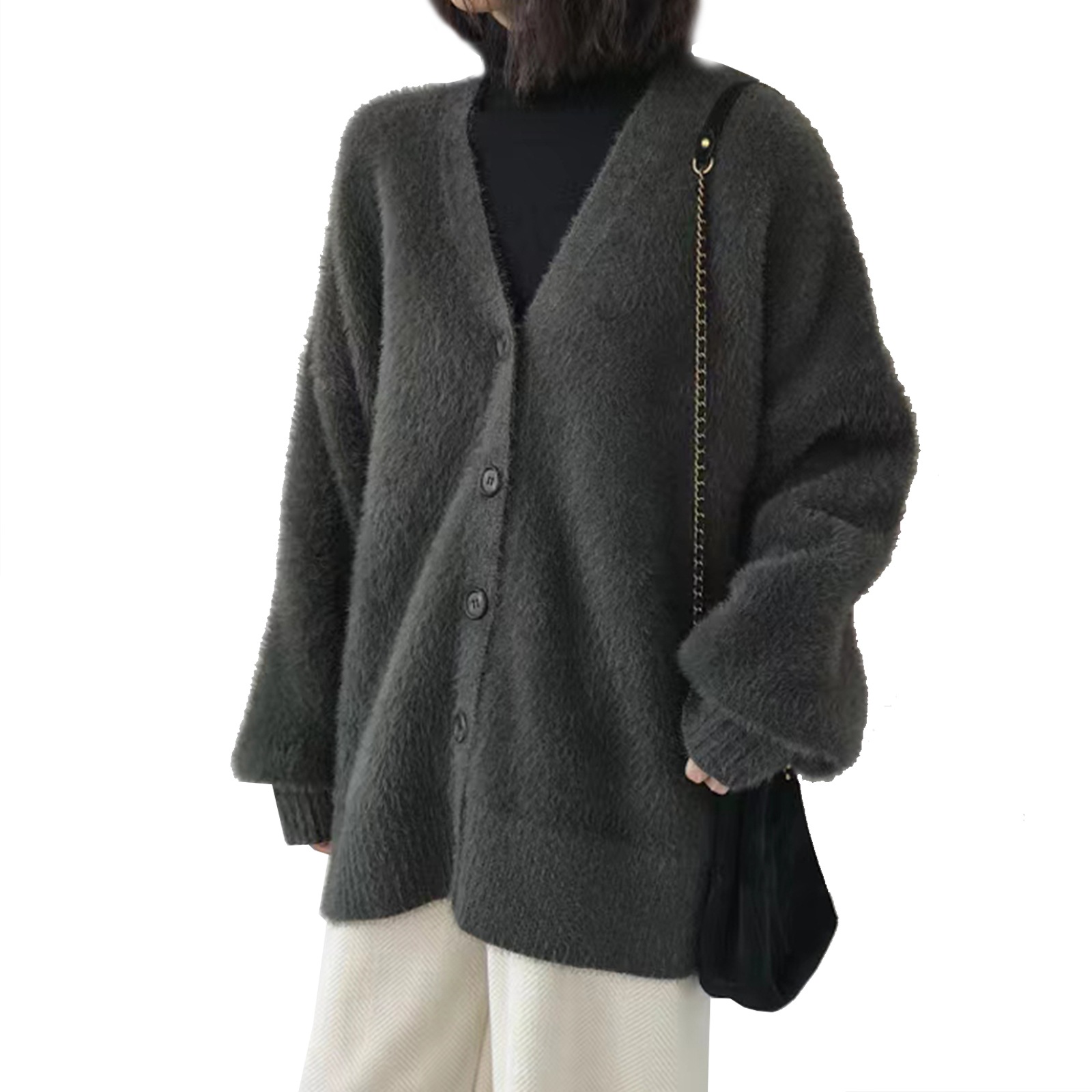 カーディガン レディース トップス カットソー 長袖 Vネック ニットソー モコモコ 前開き ボタン付け 無地 おしゃれ ふんわり シンプル ゆったり 体型カバー 柔らか 暖か 快適 厚手 普段着 通