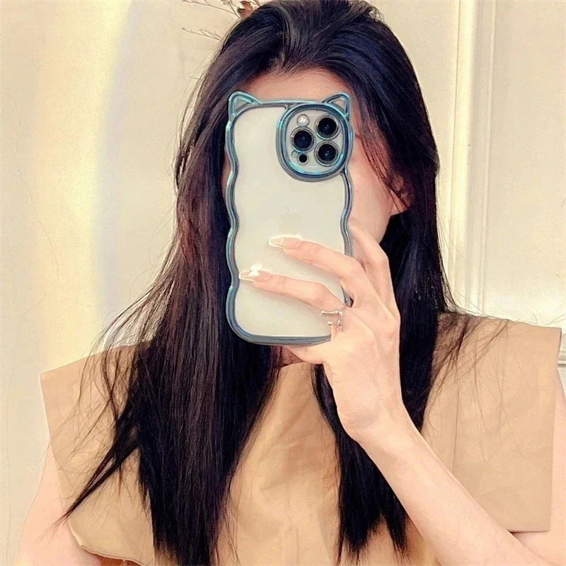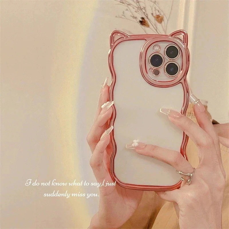 iPhone16ケースiPhone15ケース 透明クリア スマホケース iPhone14pro iPhone13 iPhone12ケース iPhone11ケース 電解メッキ 猫耳 シンプル