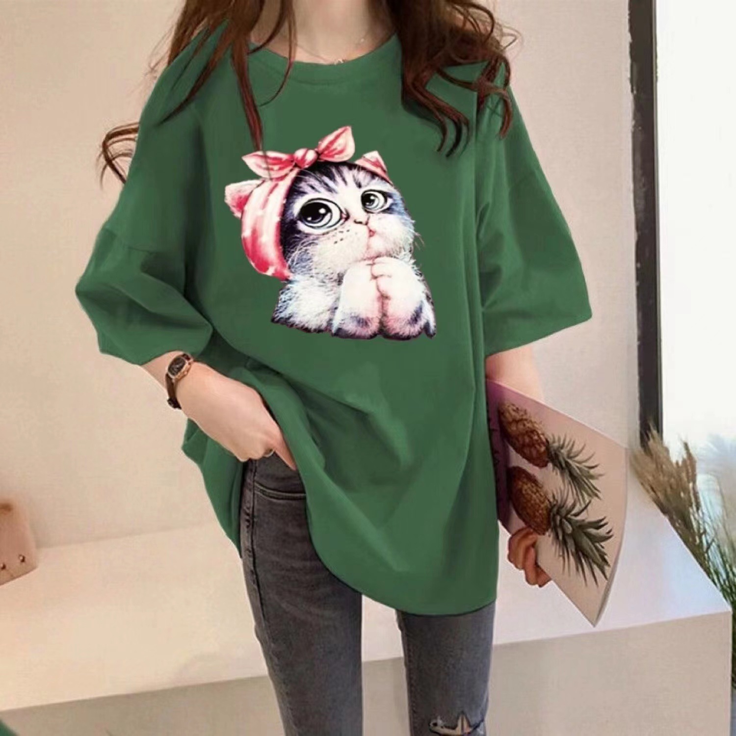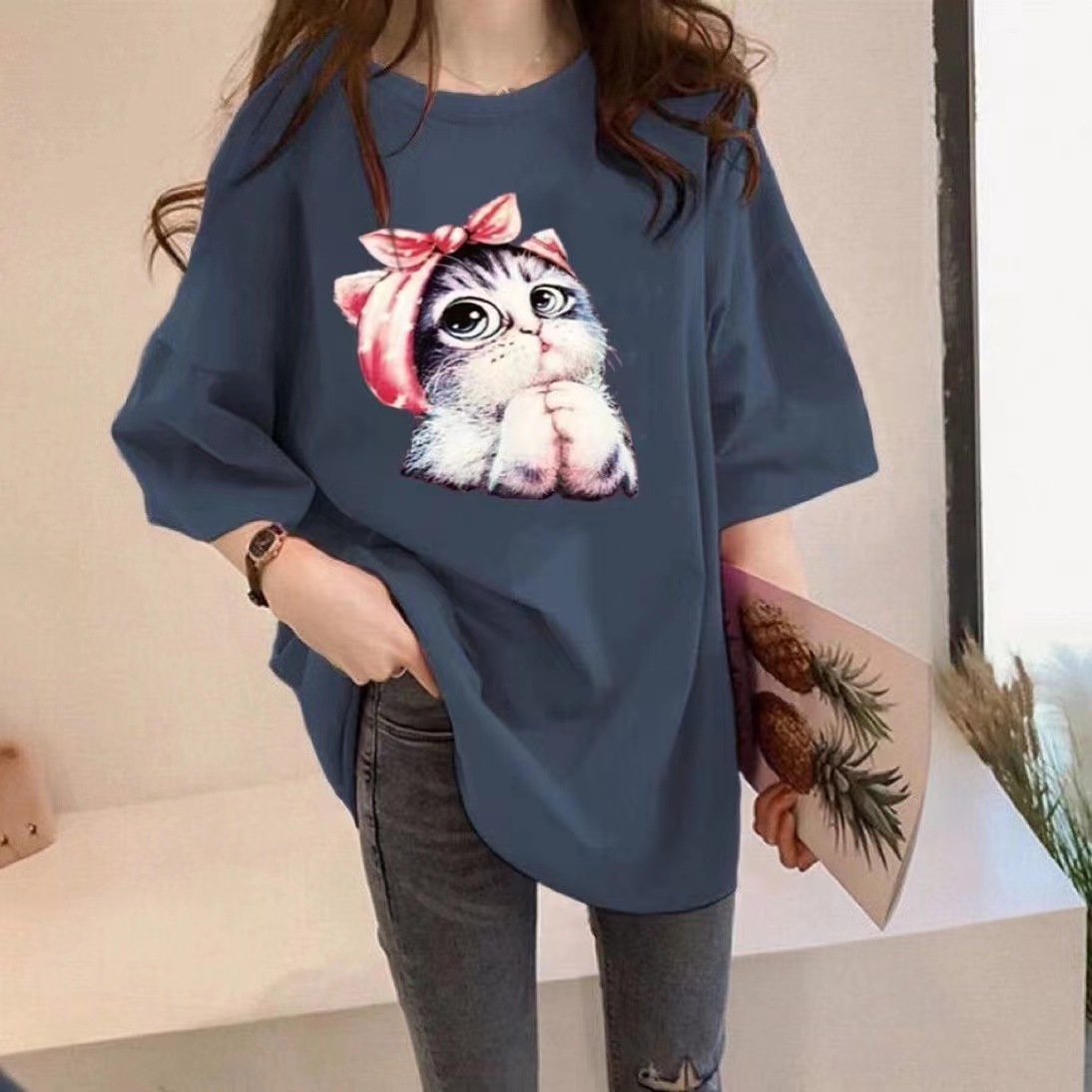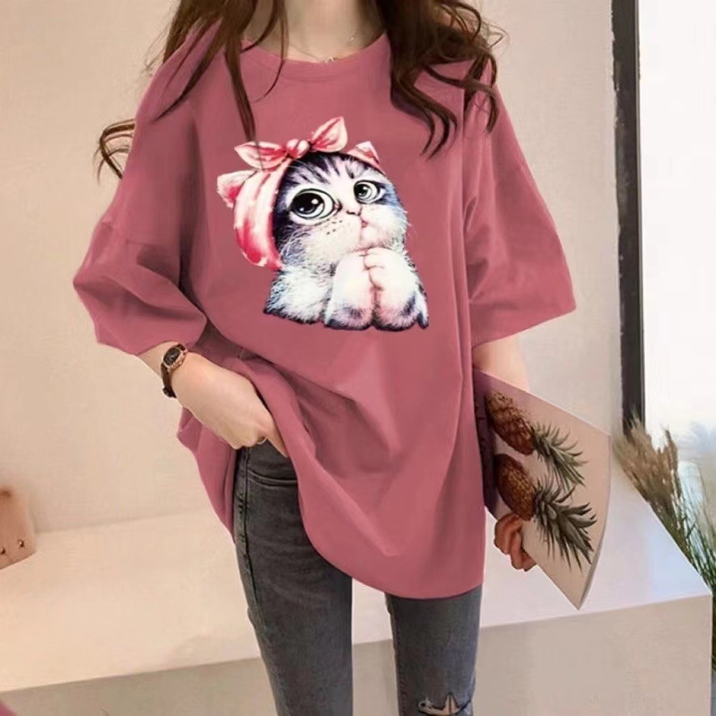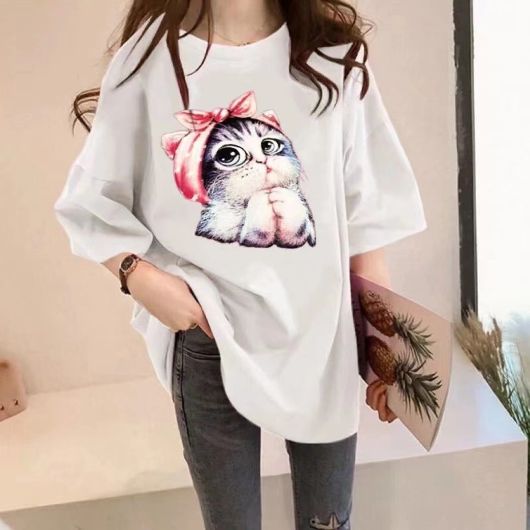 Tシャツ レディース カットソー 半袖 半そで プリント 猫柄 蝶 tシャツ トップス カジュアル