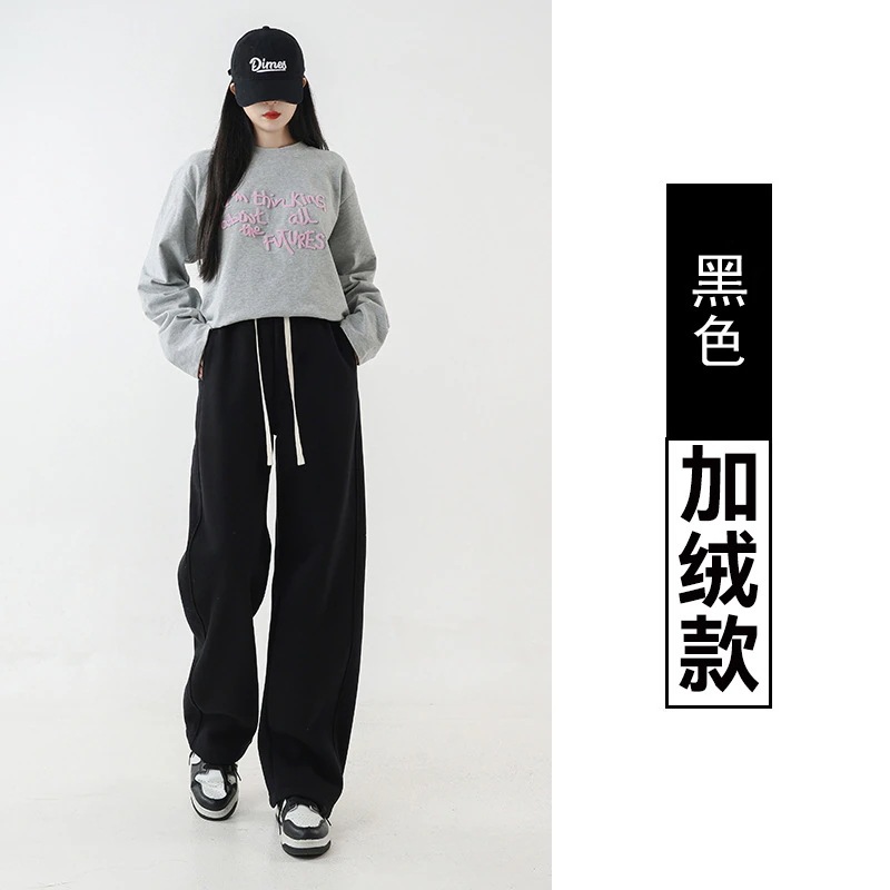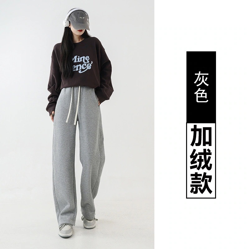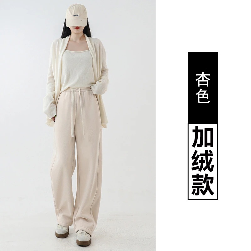 2025 冬 レディース アンゴラ柄 赤 ワイドパンツ直筒 ルーズフィット カシミア風カジュアル 新作 ボトムス