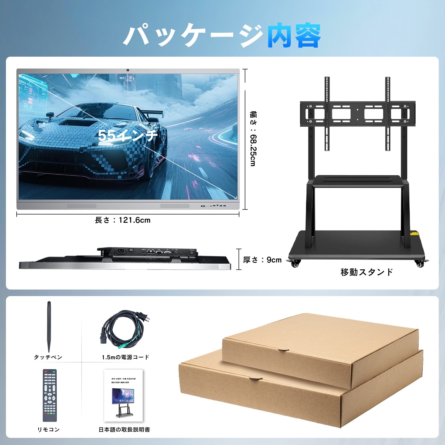 VETESA会議用 ディスプレイ 55インチ タッチ 4K Core i5 Windows搭載 Android デュアルOS Webカメラ Zoom スピーカー内蔵 移動式 モニター HDMI リモコン付き