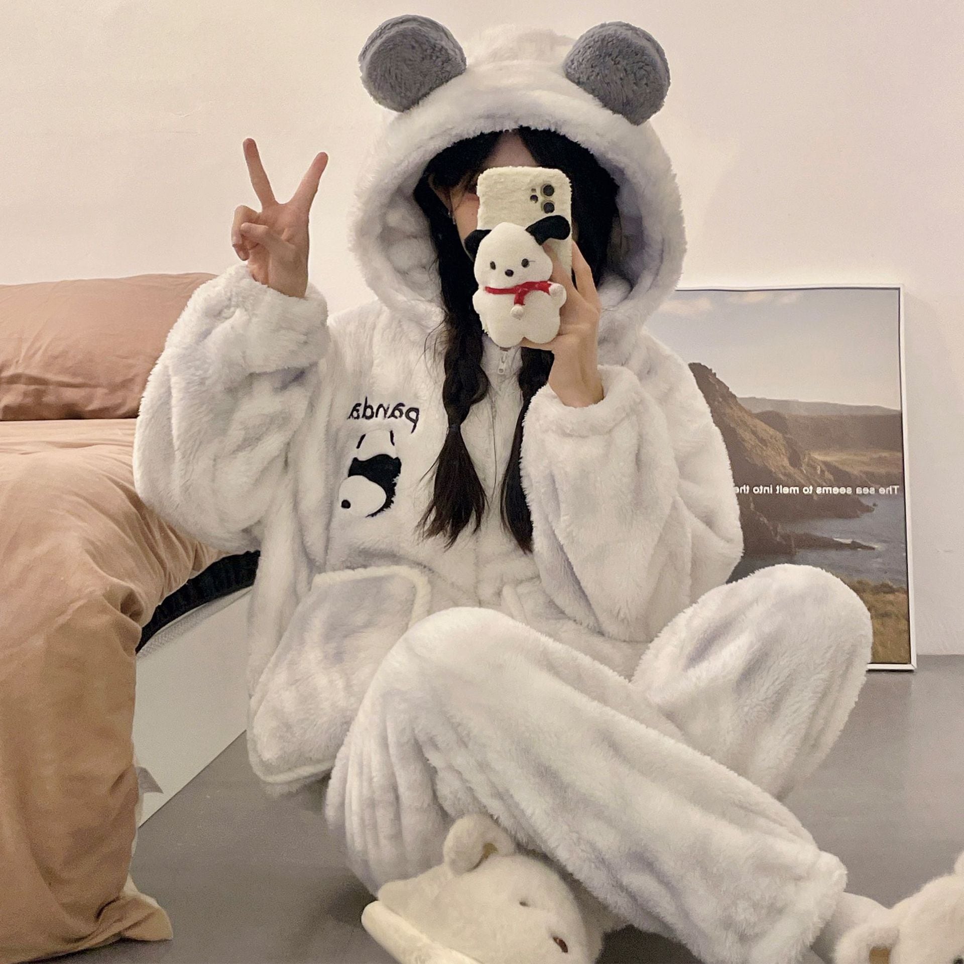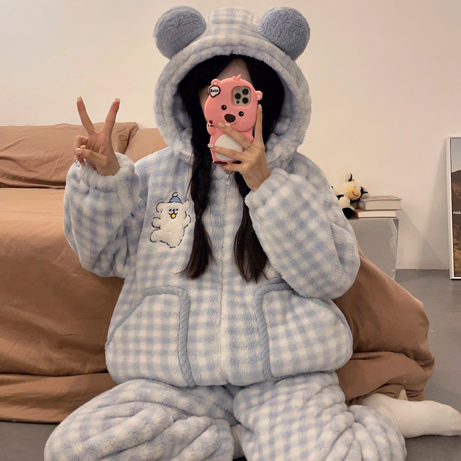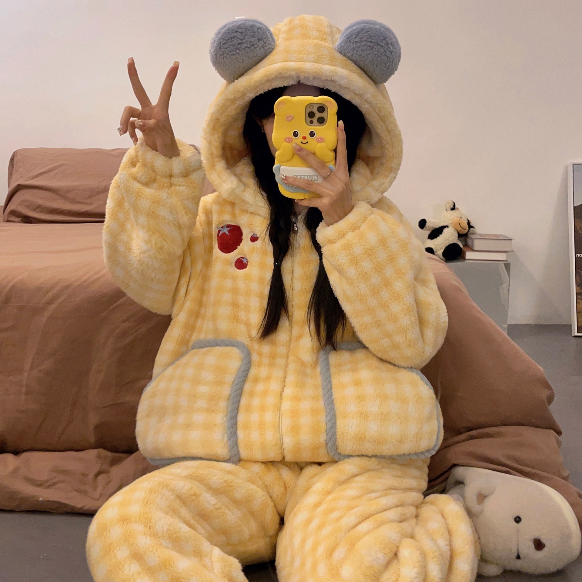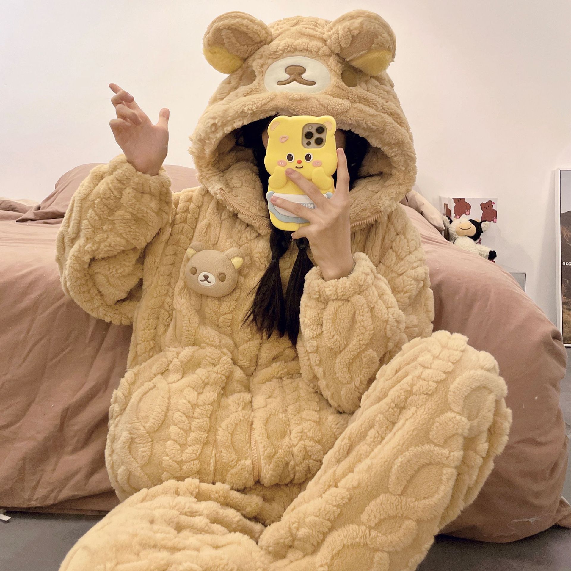 かわいいキティのパジャマ女の新コーラルダウン厚手保温フランネルの部屋着セット