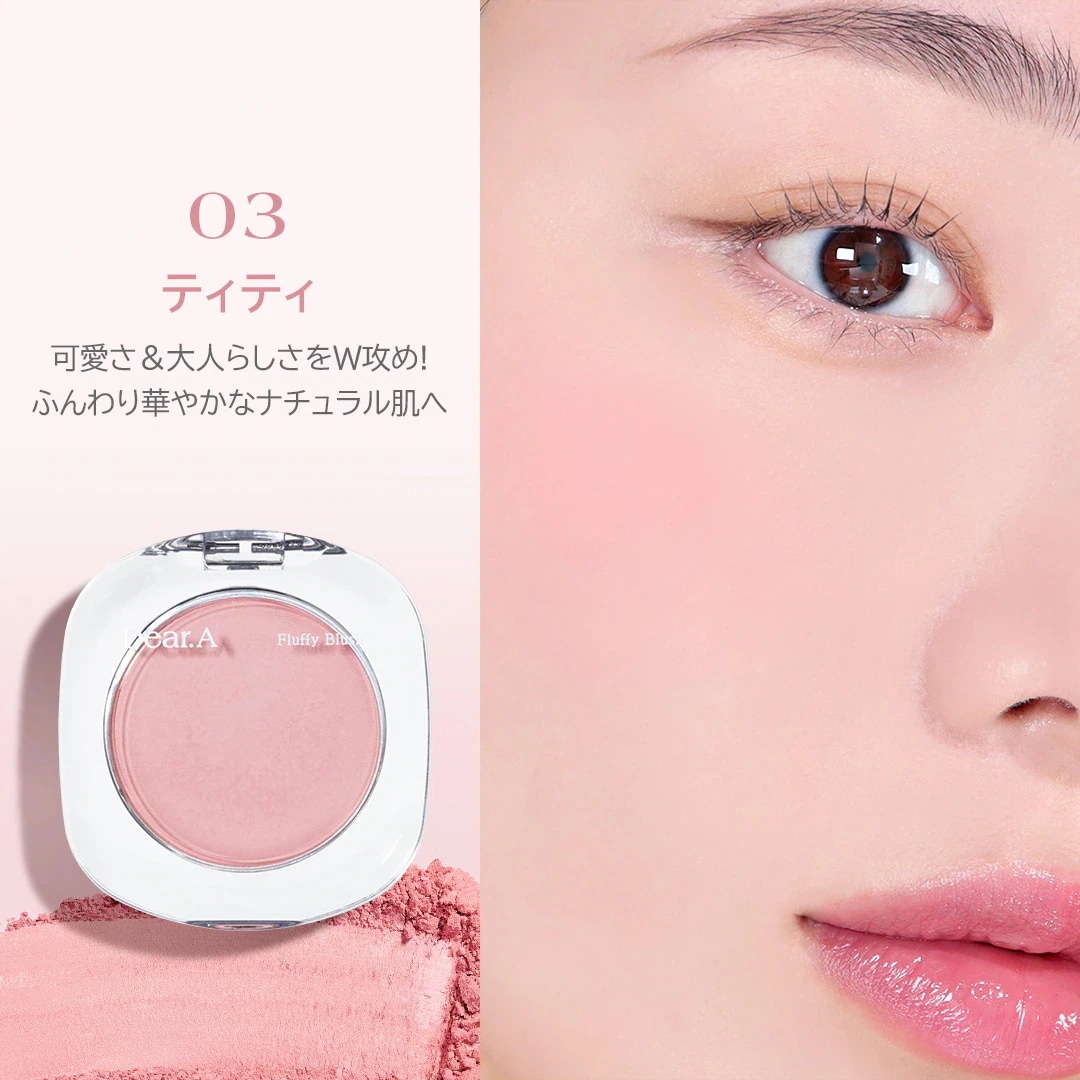 ほんのり、ふんわり色づくので、一気に濃く付くことがなく、自然に品良く仕上がります!03 tutuを購入しましたが、薄付きでほっぺがふっくらするような仕上がりで気に入っています。時間が経ってもくすむようなこともなく、次は他のカラーも試してみようと思います^ ^!