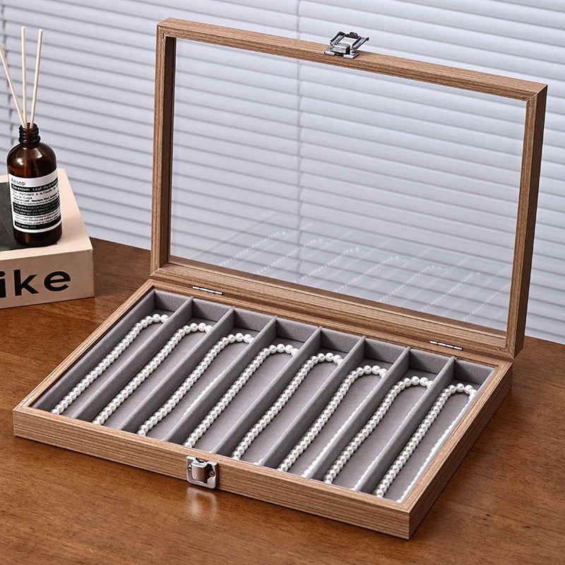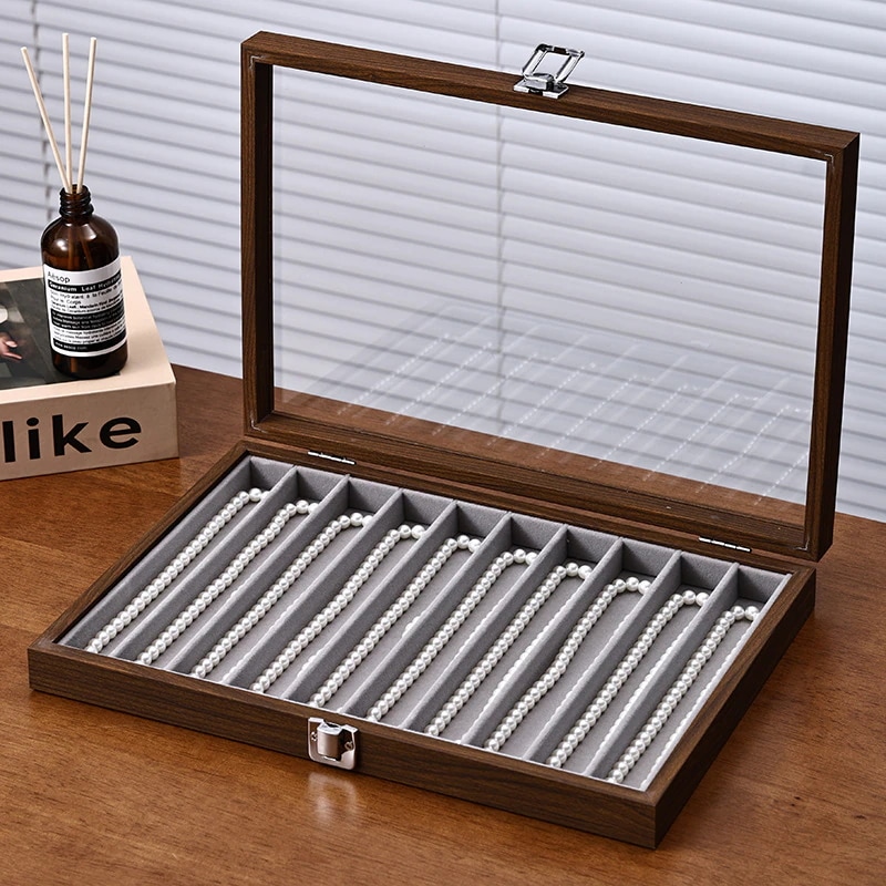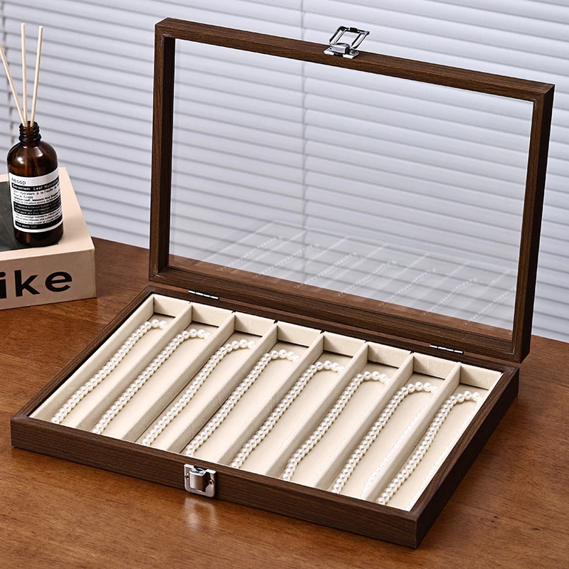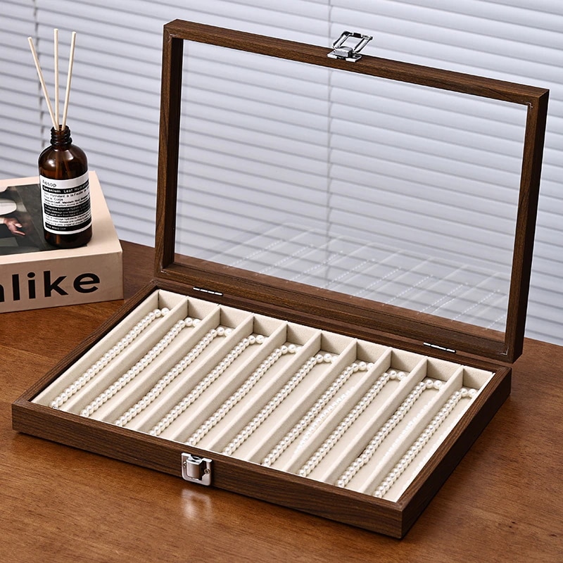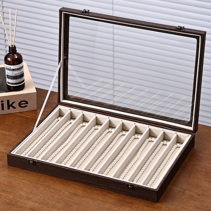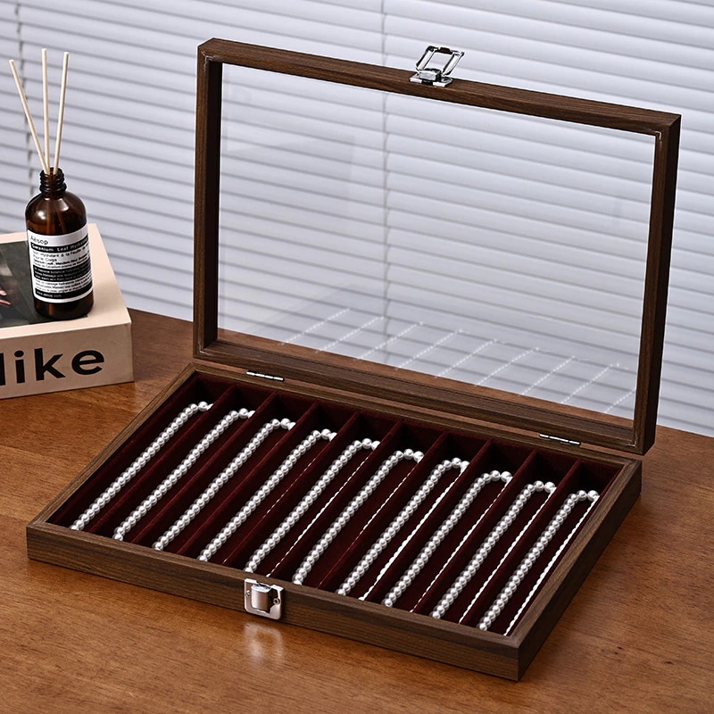 クルミ材色蓋付きジュエリーボックス ブレスレット・パールネックレス収納ボックス 髪飾り・腕時計専用防塵防湿ボックス ジュエリーボックス