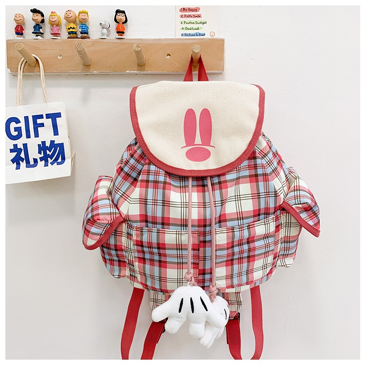ファッションの甘い格子縞は女子学生の小さい肩の韓国版の新型のアニメの目の小さい手袋を覆います