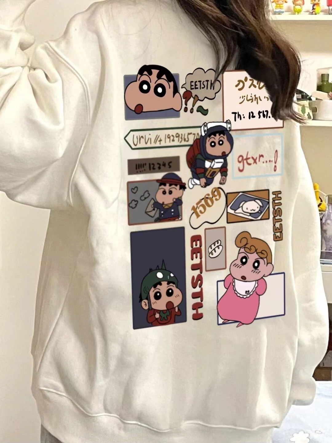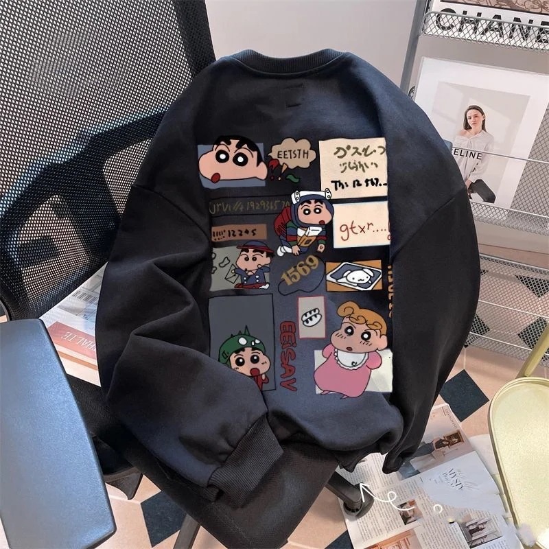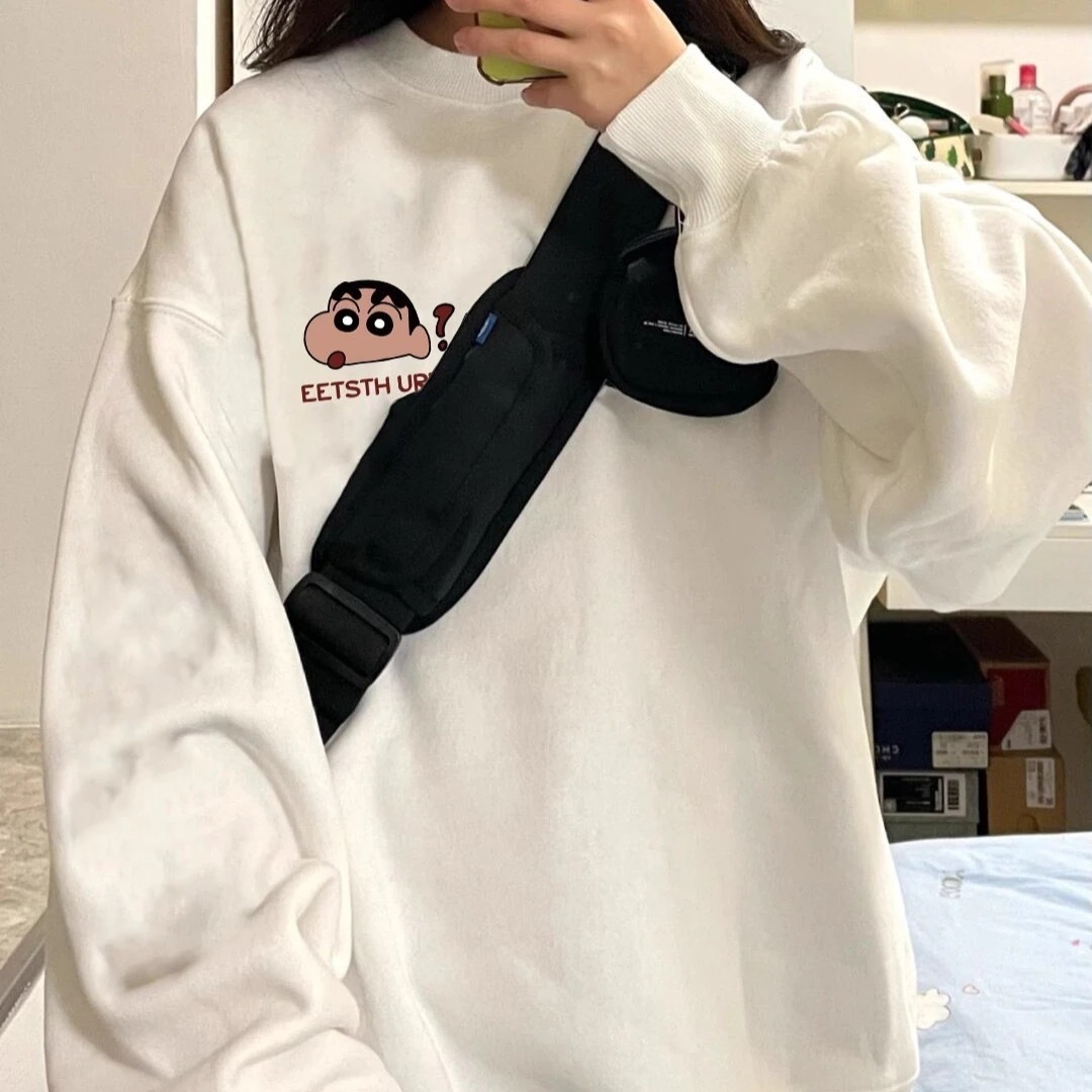 プリントスエードパーカー男女長袖丸首ゆったり