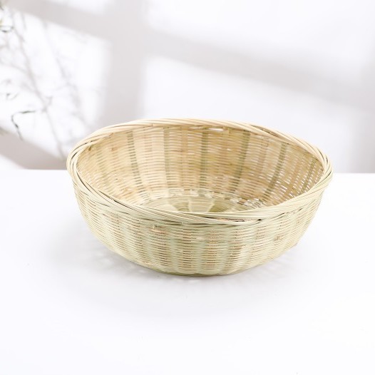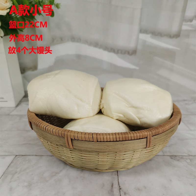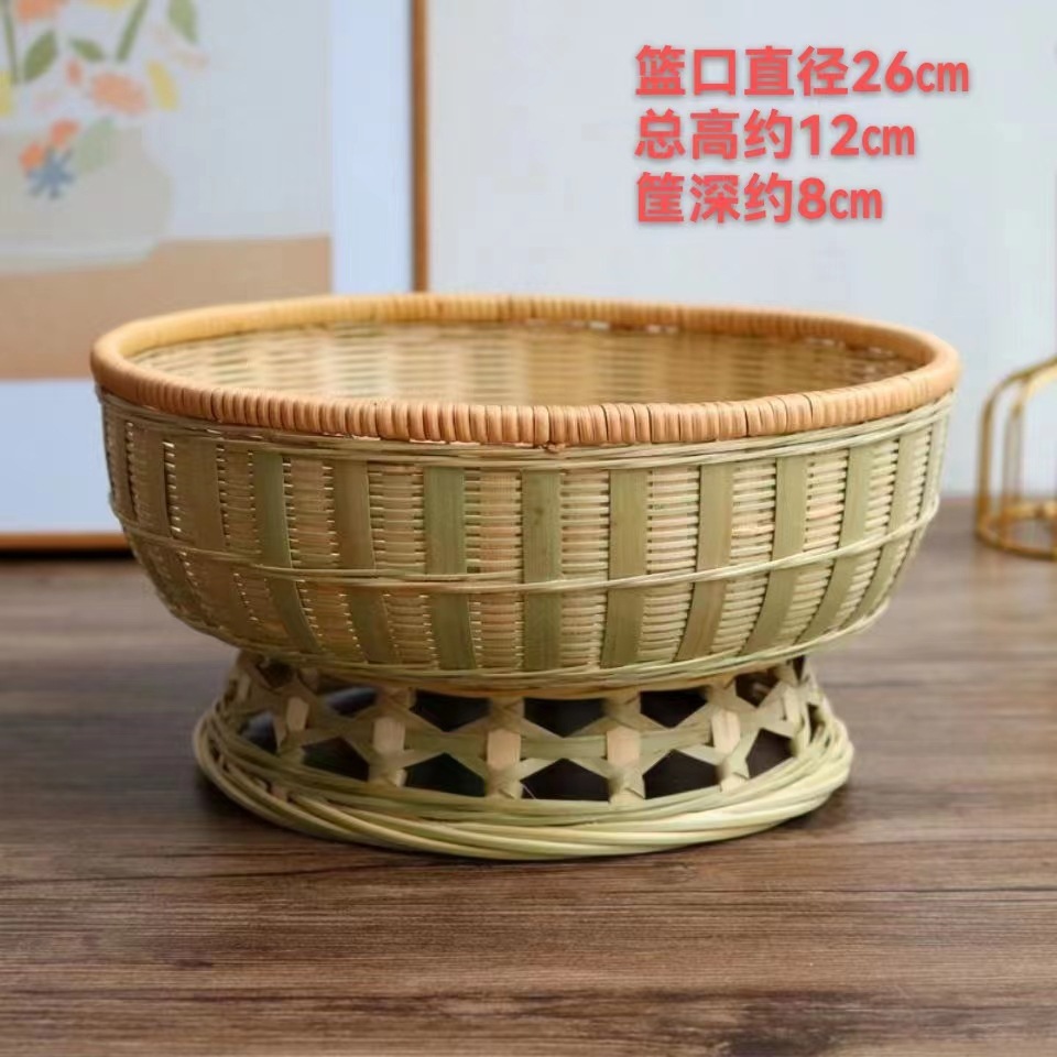 家庭用キッチン洗菜籠大号丸型竹編み藤ふち蒸しパンかごおやつフルーツ籠精巧に編んだ高脚編みかご
