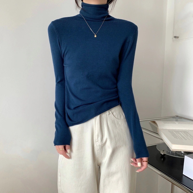 色はオフホワイト、生地は思ったより厚め、前後の印なく多分ハイネックの縫い目が左に来るように着ればよいのかな?とても暖かそうです。