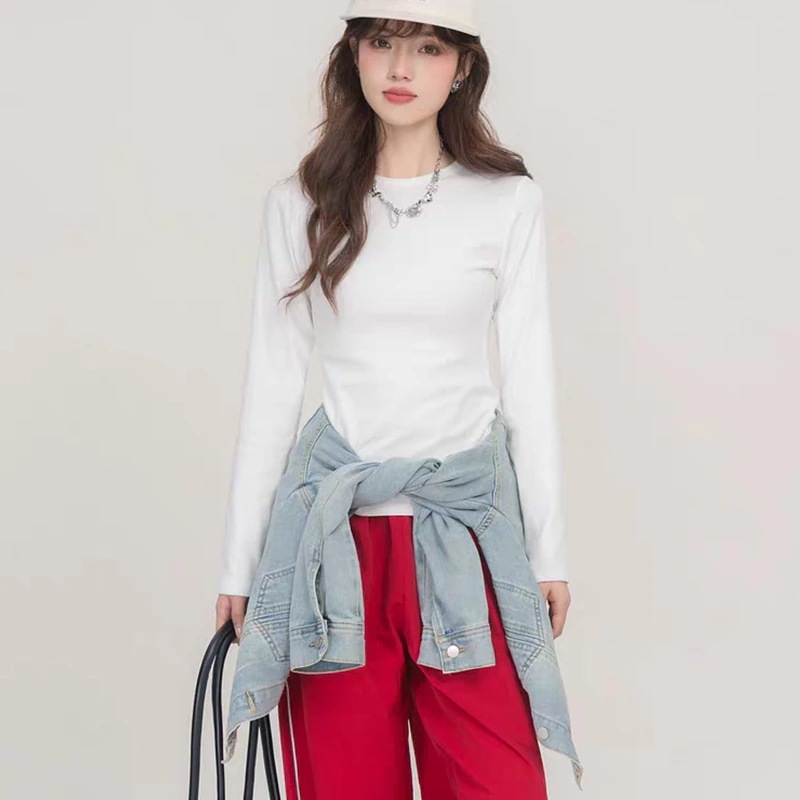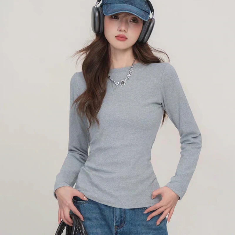【年末限定秋冬】 長袖 Tシャツ インナー ロンT ニット 伸縮性 シンプル 無地 スリットデザインゆるニット無地 長袖 スリット ニットシャツ 長袖 リブ ストレッチ ニット