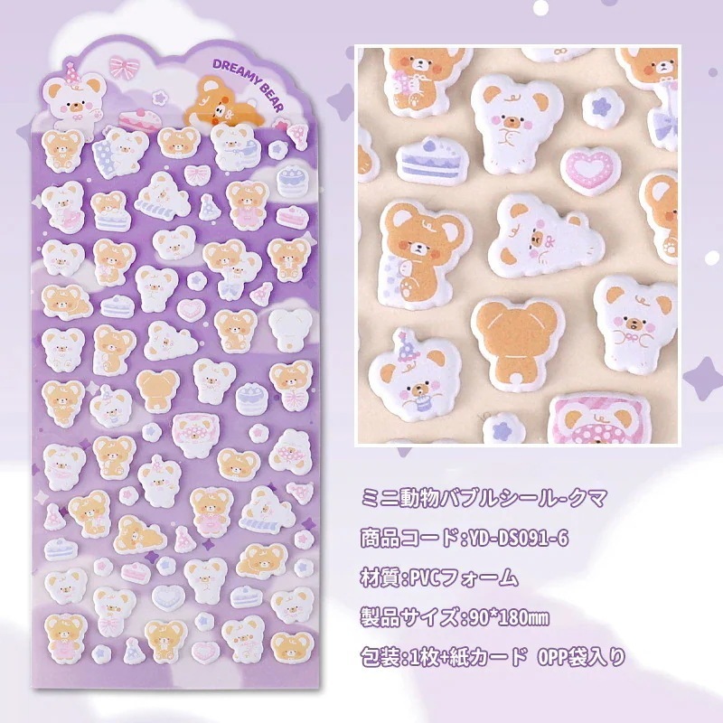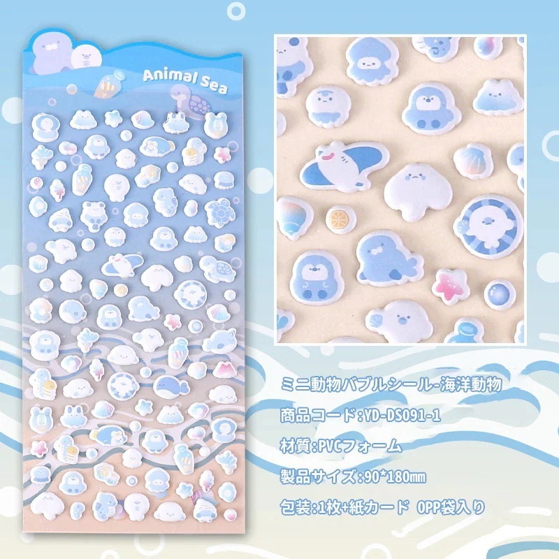 新発!3D ミニ動物バブルシール 子供用アニメ3D立体シール シール帳 手帳 DIY アクリルレジン エンボス 可愛い