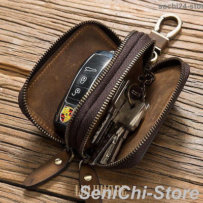 タイムセールキーケース レザー 革 スマート キーケース 牛革 メンズ 車 ダブルファスナー ポケット 大容量 本革 スマートキーケースキーケース