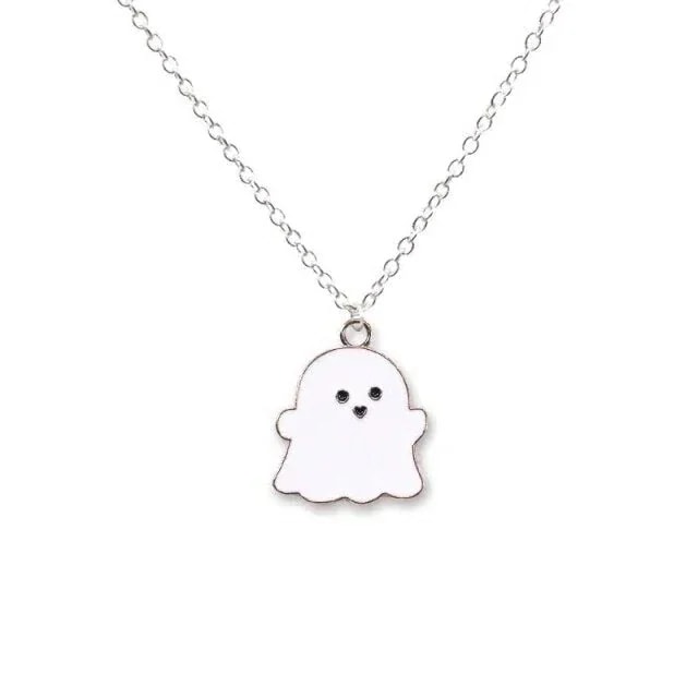 女性のためのかわいい黒と白のゴーストペンダントネックレス男性の親友ラブリーゴーストペンダントカップル