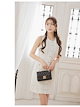 ワンピース キャバドレス ノースリーブ ツイード チェック パールボタン きれいめ 上品 お嬢様 ポケット 白 ミニ丈 Ryuyu