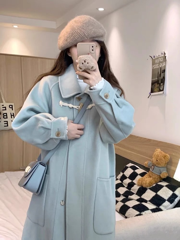 韓系学園風ミッドレングストレンチコート レディース 秋冬季痩せ効果 プラスサイズ対応 カジュアルニット厚手 ニットコート
