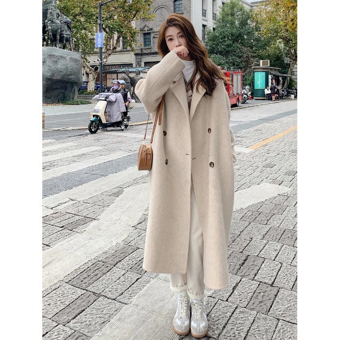ピンク両面ウールコート レディース 2025 秋冬新モデル 韓版ルーズミッドレングス ヘプバーン風ニットアウター