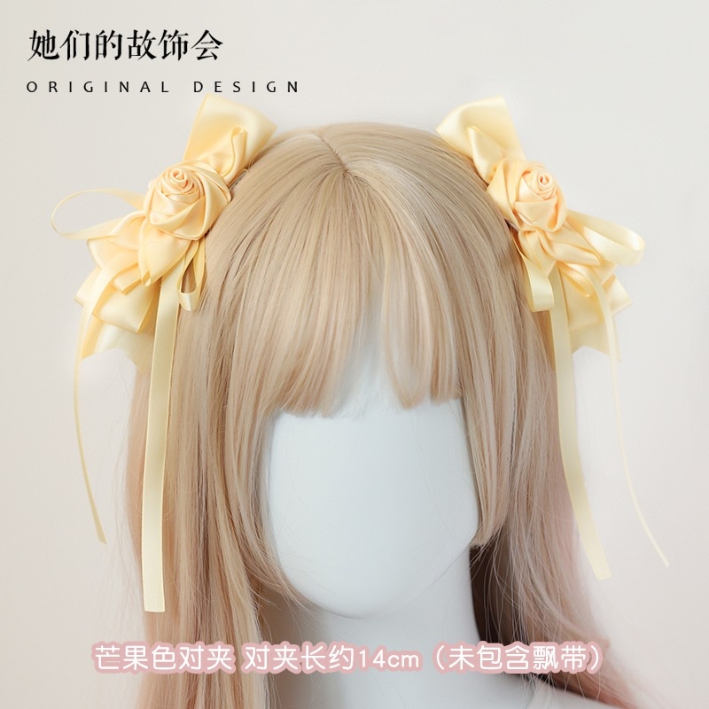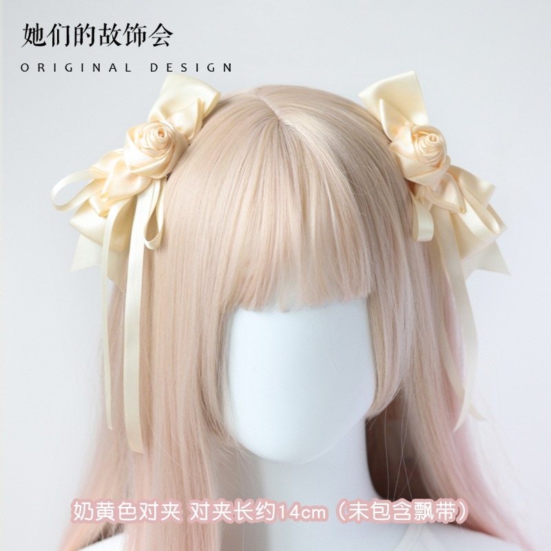 ローズストリーマーclaポニーテールクリップマルチカラーパストラルロリータハンドメイド小物ヘアアクセサリー