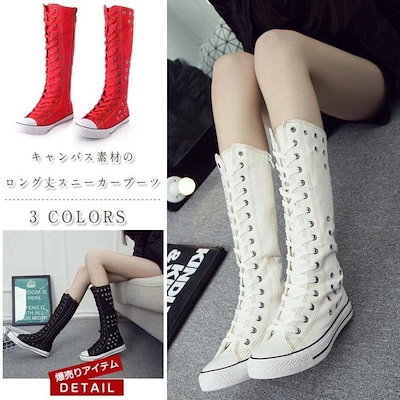 キャンバスシューズ 靴 スニーカー ブーツ ロング レディース ブーツ レースアップ 厚底スニーカー
