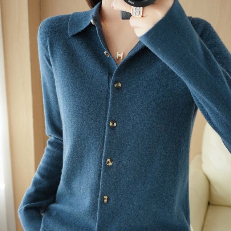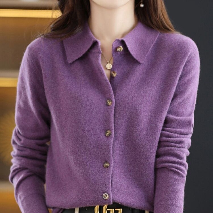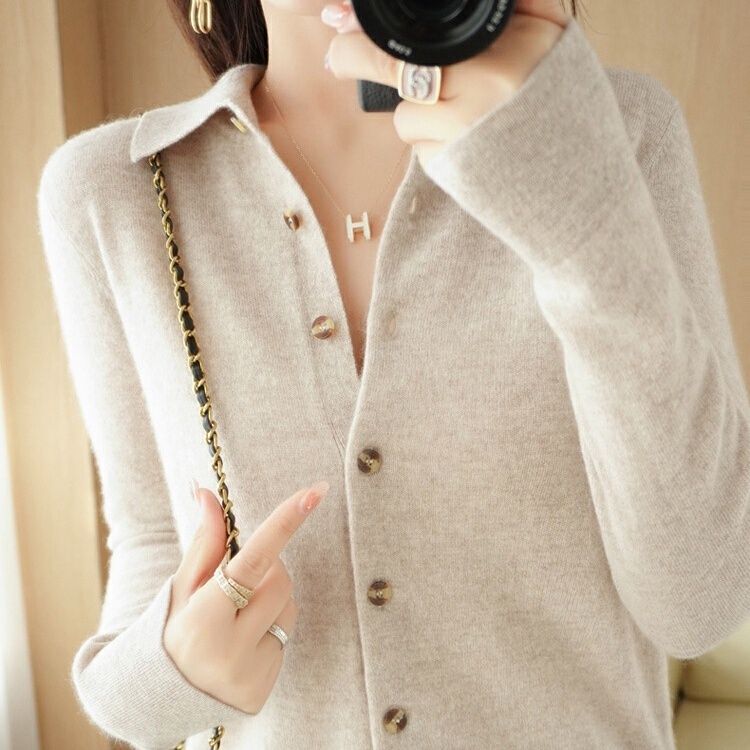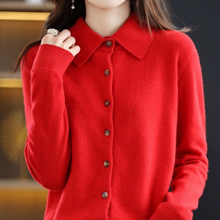 カーディガンpolo純色ニット新型ウール襟ゆるい底セーターコート