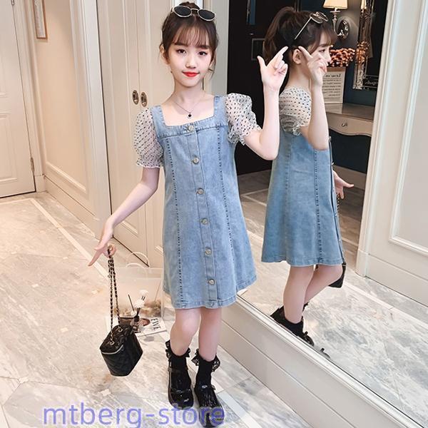子供服 ワンピース 160 韓国子ども服 キッズ 女の子 半袖 デニムワンピース 子供ドレス 結婚式 誕生日 ベビー服 ジュニア お姫様 おしゃれ 可愛い