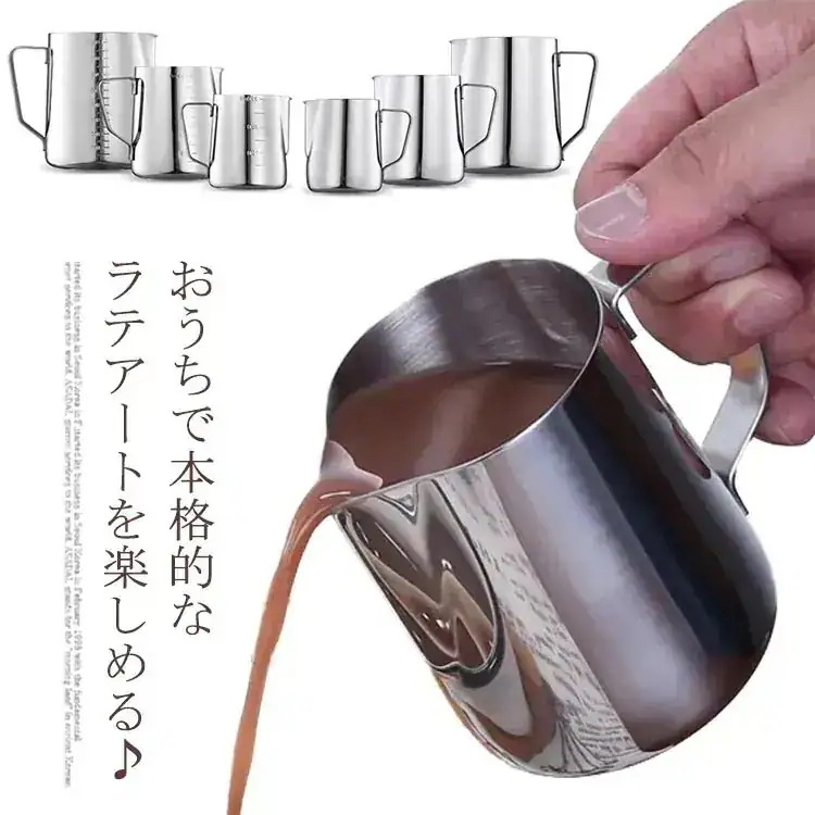 ミルクピッチャー ラテアート ステンレス製 ラテアートピン ミルクジャグ 泡立てやすい 350ml 600ml 950ml プロ仕様 一目で分かるメモリ付き ミルクマグ ミルクフォーマー コーヒー 水
