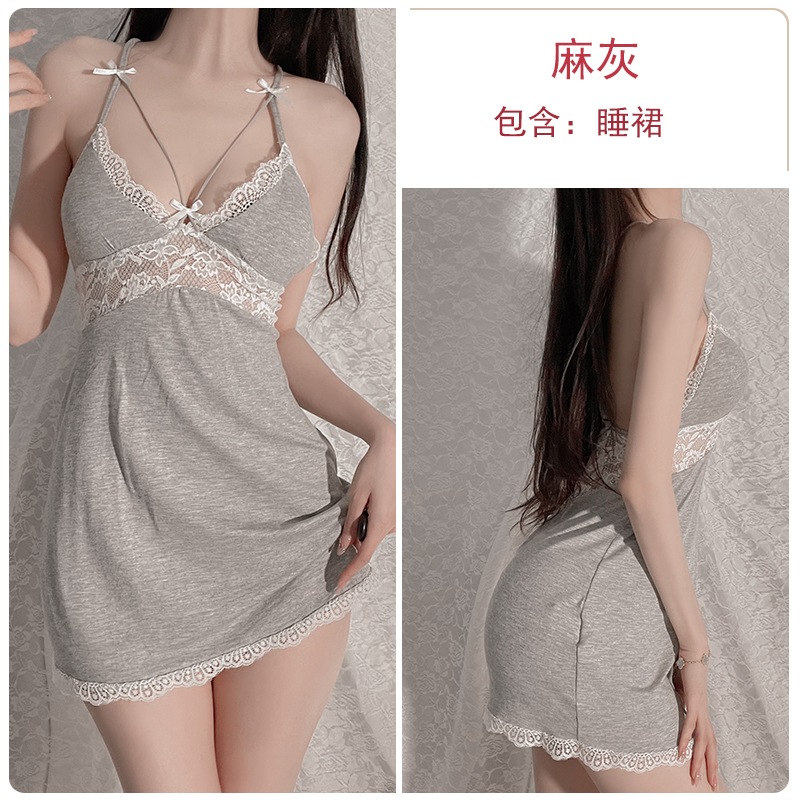 胸パッド付き用女性用セクシーパジャマモダールコットンサスペンダーナイトガウンレース中空ヒップスカート