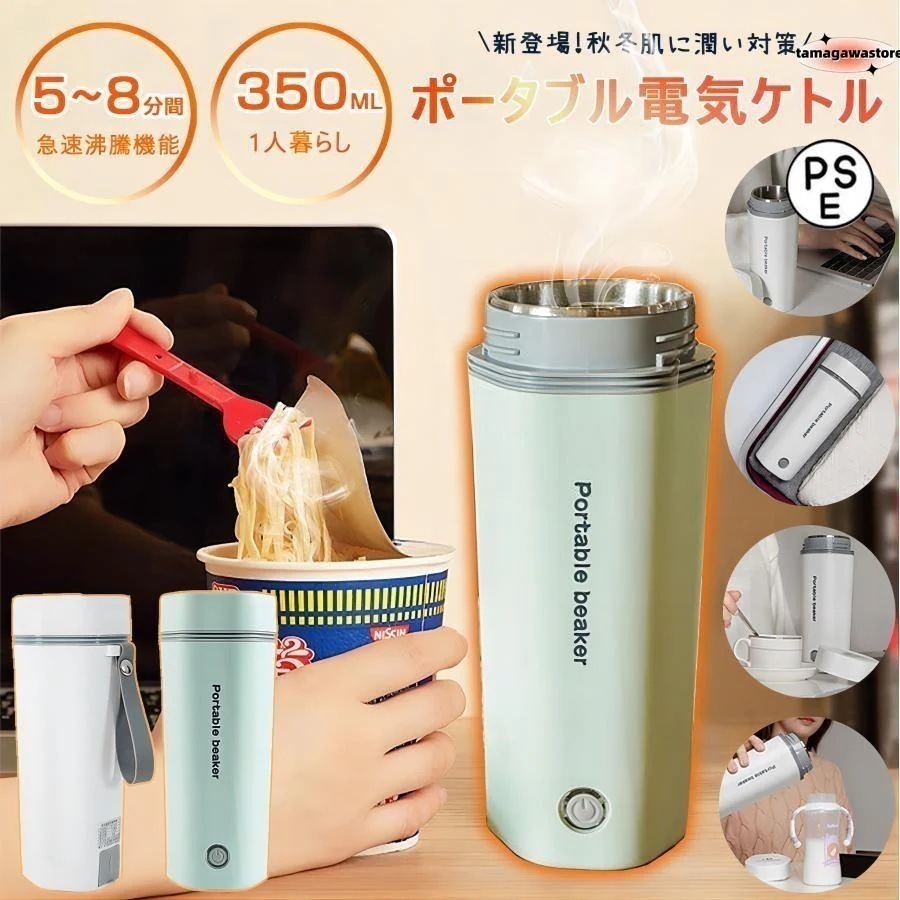 水筒 電気ケトル 電気ポット 400ml 小型 軽量 ミニ 5分間で沸騰 電気ボトル ボトル 魔法瓶 ポータブル ケトル 自動電源FF 空だき防止機能