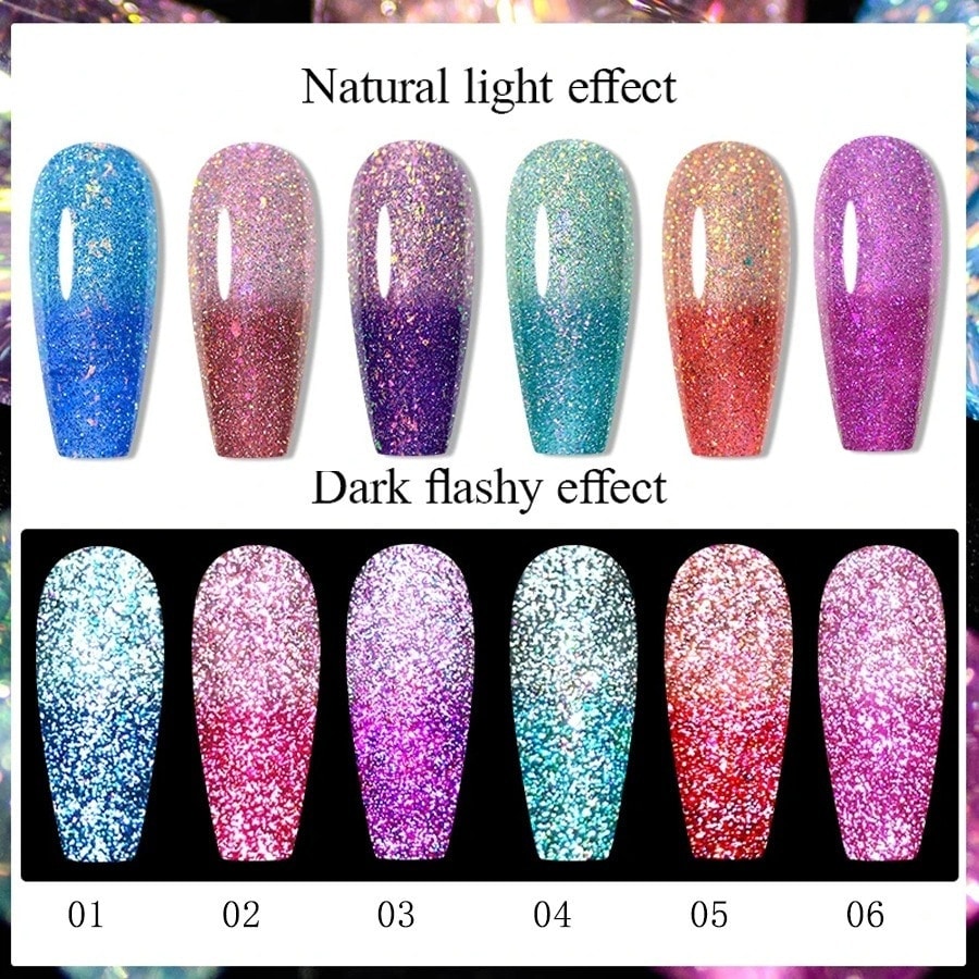 全6種 初心者&プロ適用 6点セットポリッシュタイプ セルフネイル 欧米 スタイル 変色 カラージェル キラキララジェル ラメ入り ジェルネイルポリッシュセット シルバー 紫 ブルー