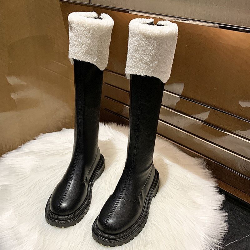 ラムファーブーツニーハイブーツ新型冬ギャザースノーブーツネットレッドブーツスリムブーツ
