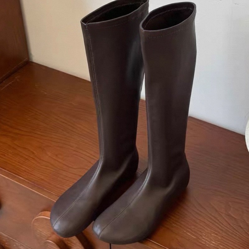 レトロな丸首のロングブーツストレッチブーツ女性の秋冬の新型インナーアップアウタースリムブーツ