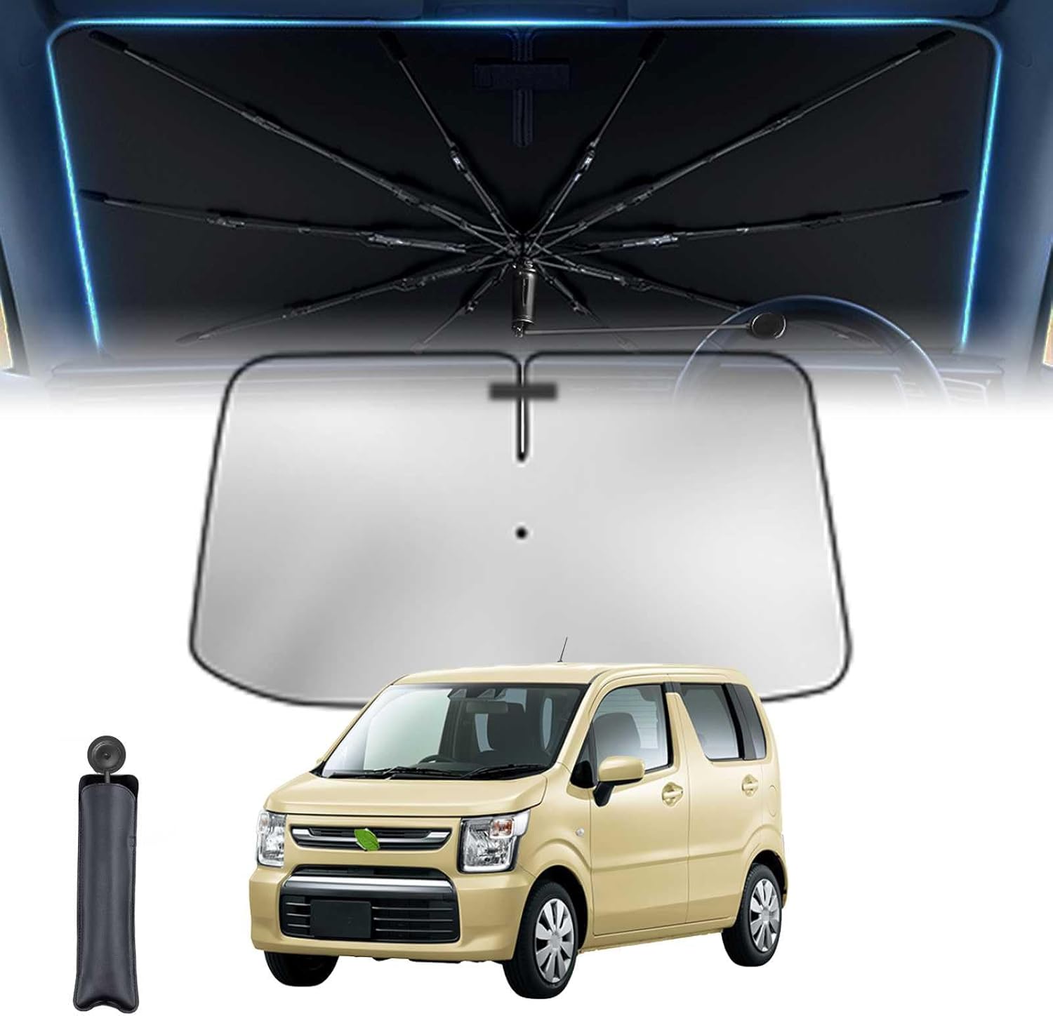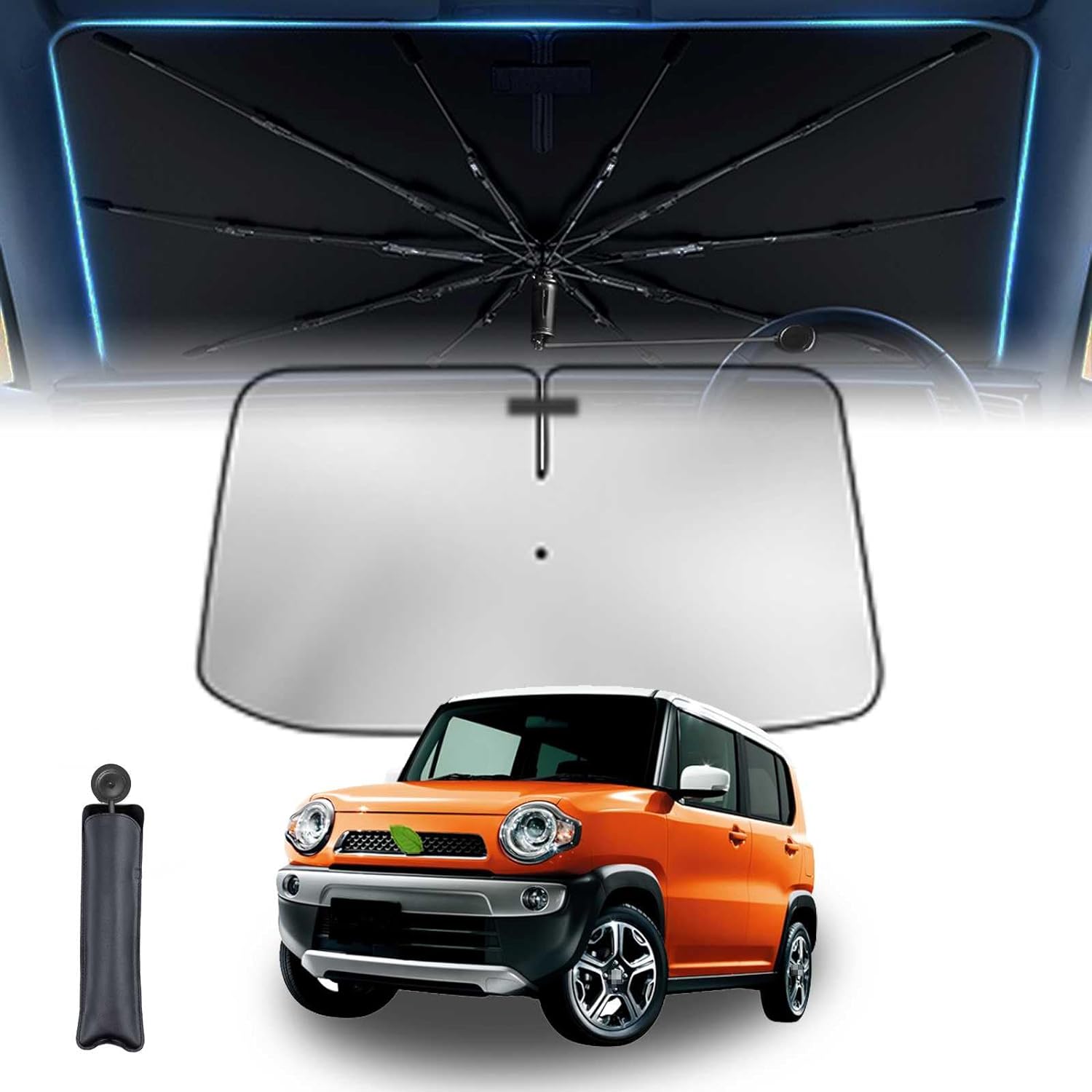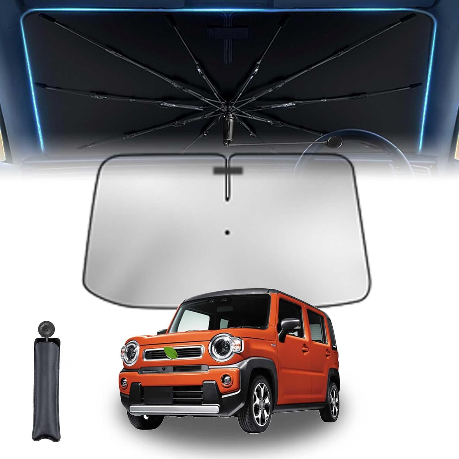 スズキ傘柄曲げ可能 スズキ ハスラー Hustler 1代目 車用サンシェード 車 サンシェード 傘型 11層 UVカット紫外線遮蔽 折り畳み式 グラスファイバー