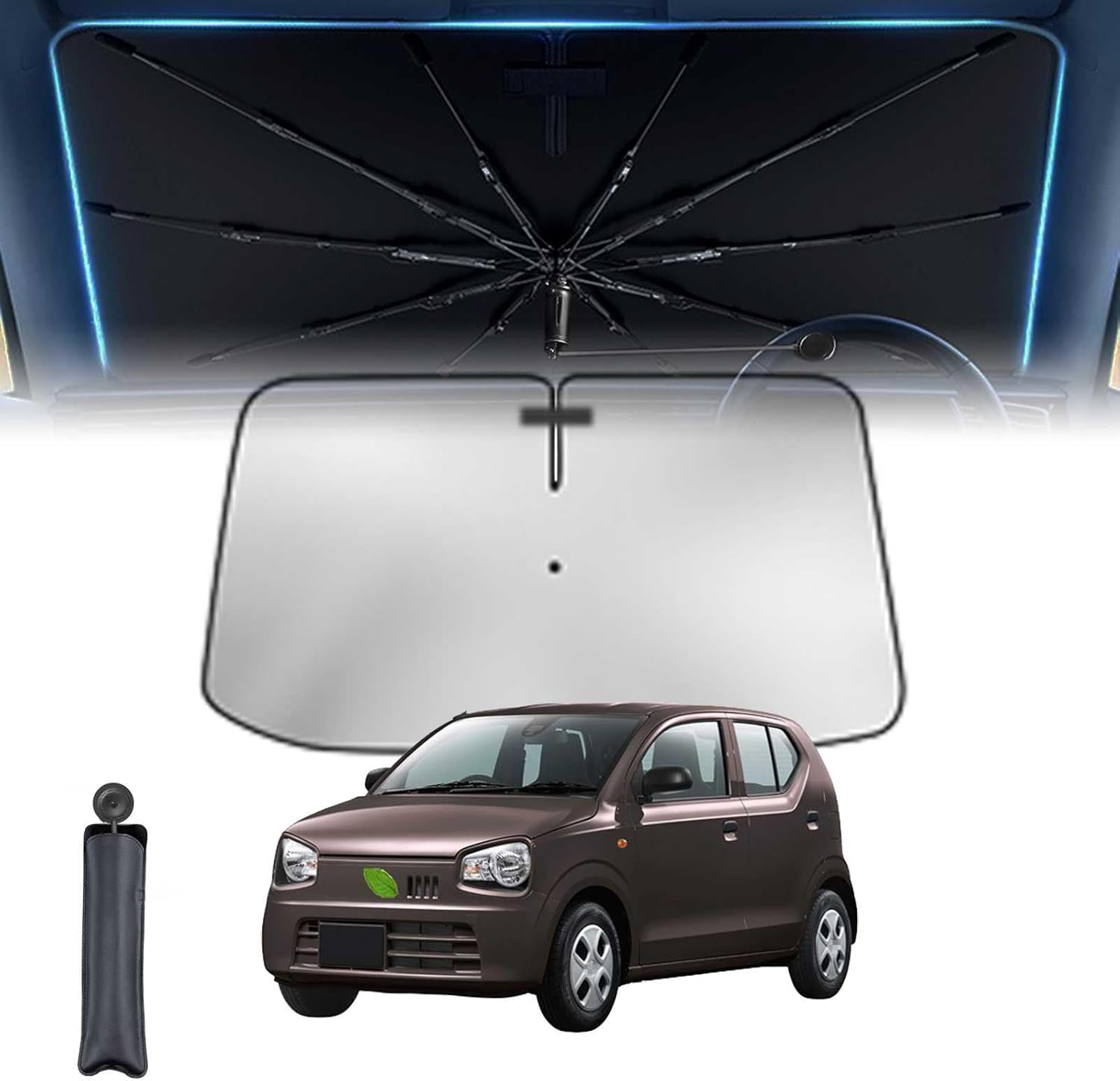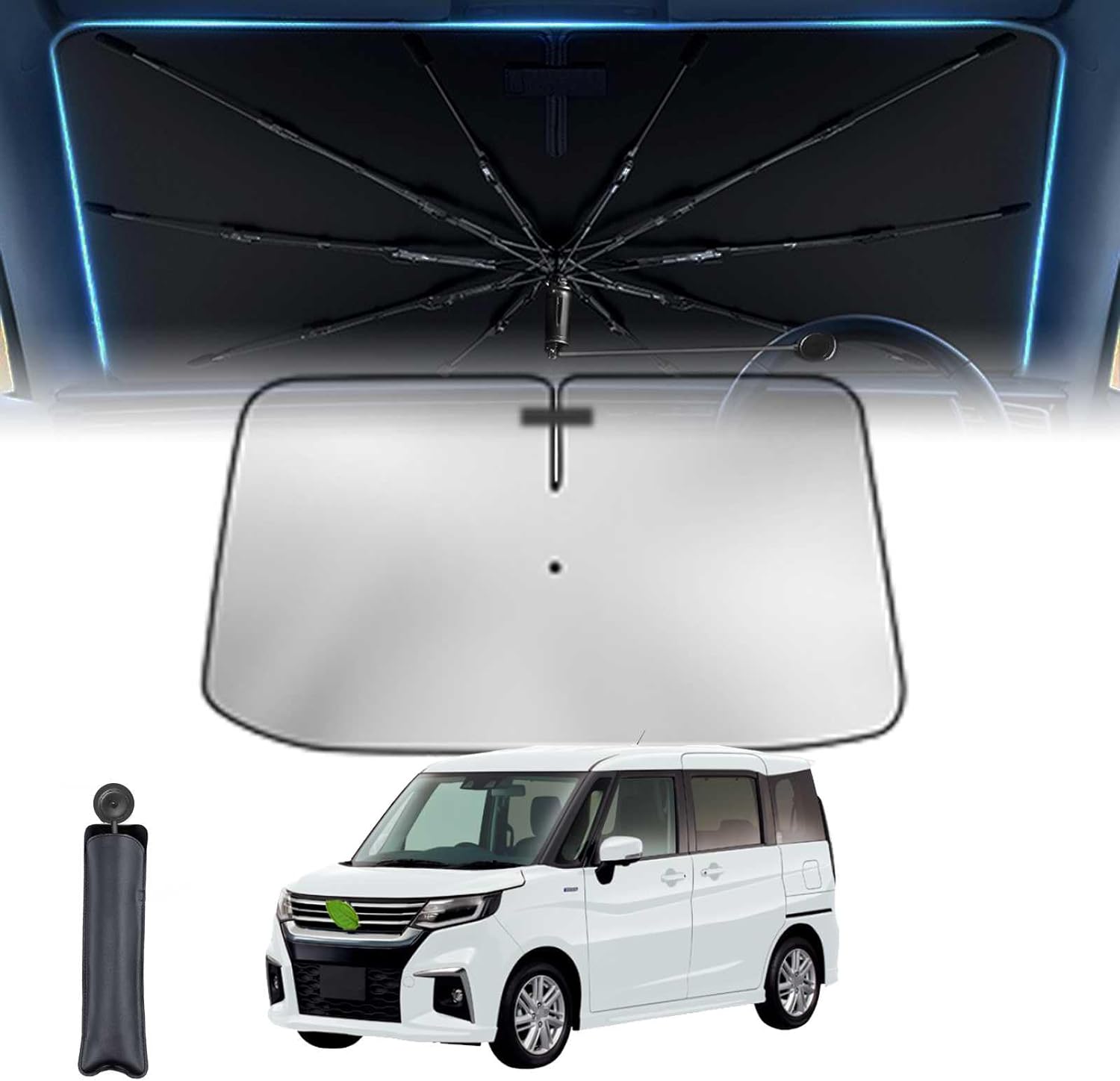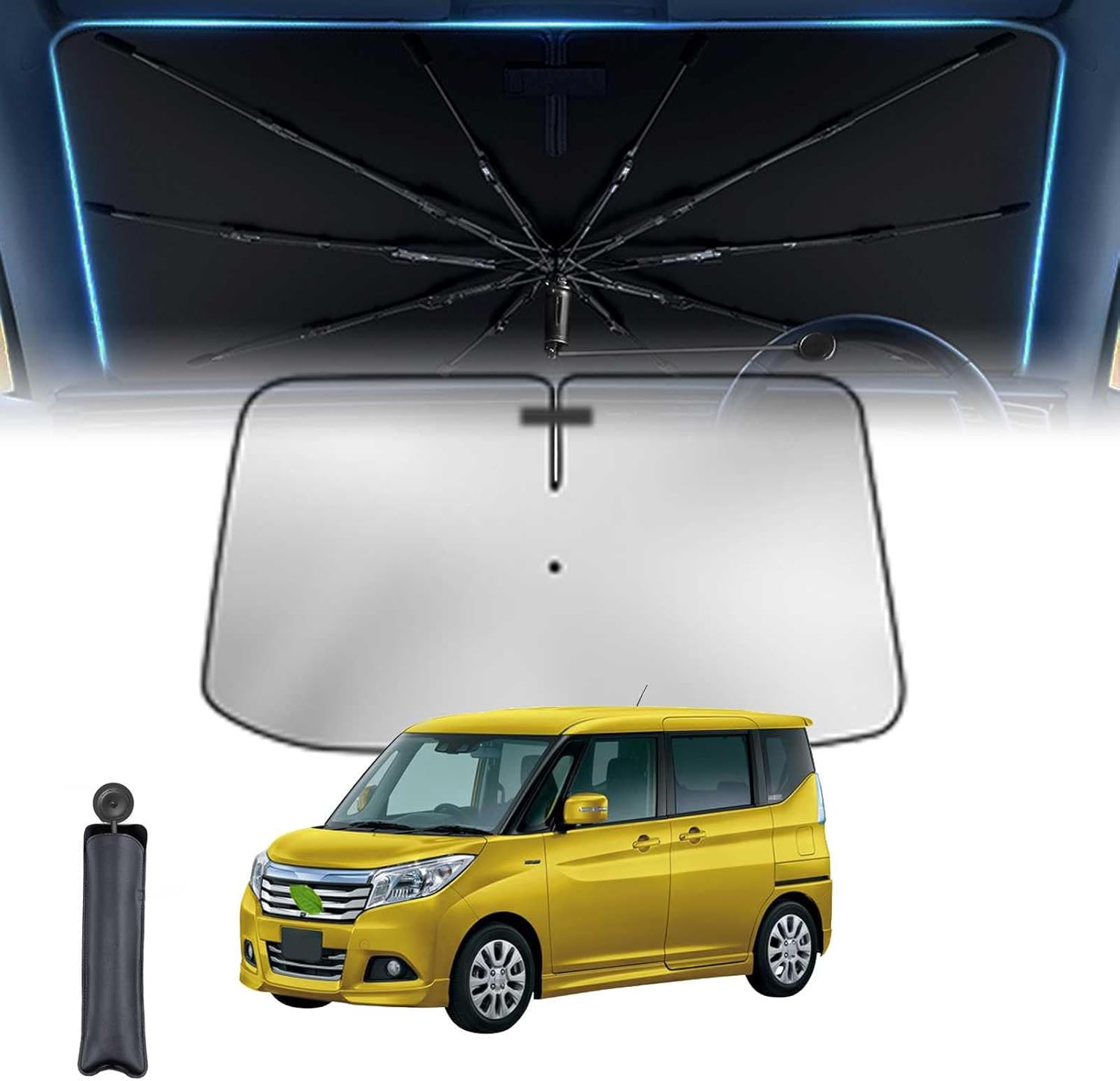 スズキ傘柄曲げ可能 スズキ ハスラー Hustler 1代目 車用サンシェード 車 サンシェード 傘型 11層 UVカット紫外線遮蔽 折り畳み式 グラスファイバー