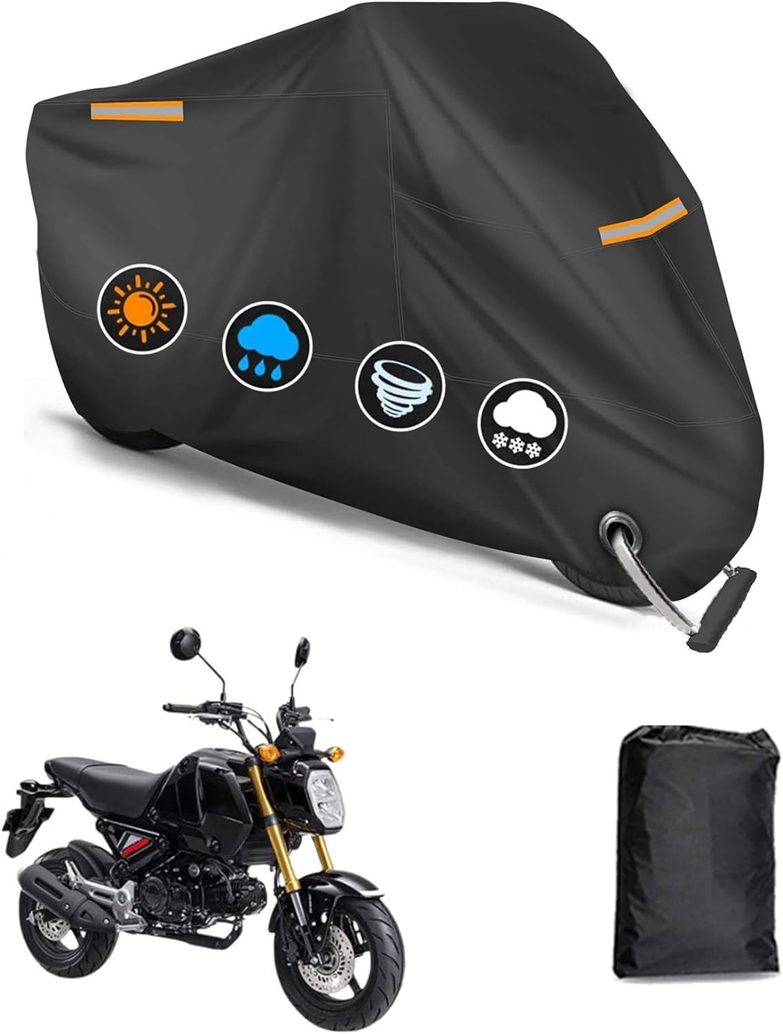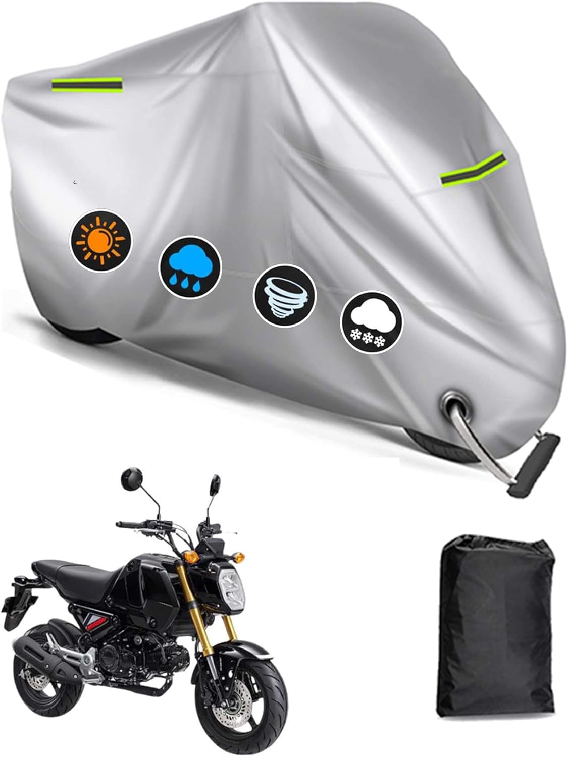 ホンダバイクカバー ホンダ グロム MSX125 専用 バイクカバー バイクボディーカバー 3つの反射ストリップ 原付カバー UVカット 凍結防止カバー 車体カバー 盗難防止 ワ