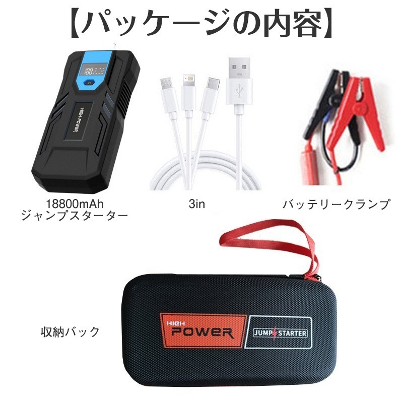 送料無料 エンジンスターター ブースター 車載 キャパシタ スターター 12V バッテリー上がり バッテリーレス 非常用電源 18800mAh ポータブル USB出力