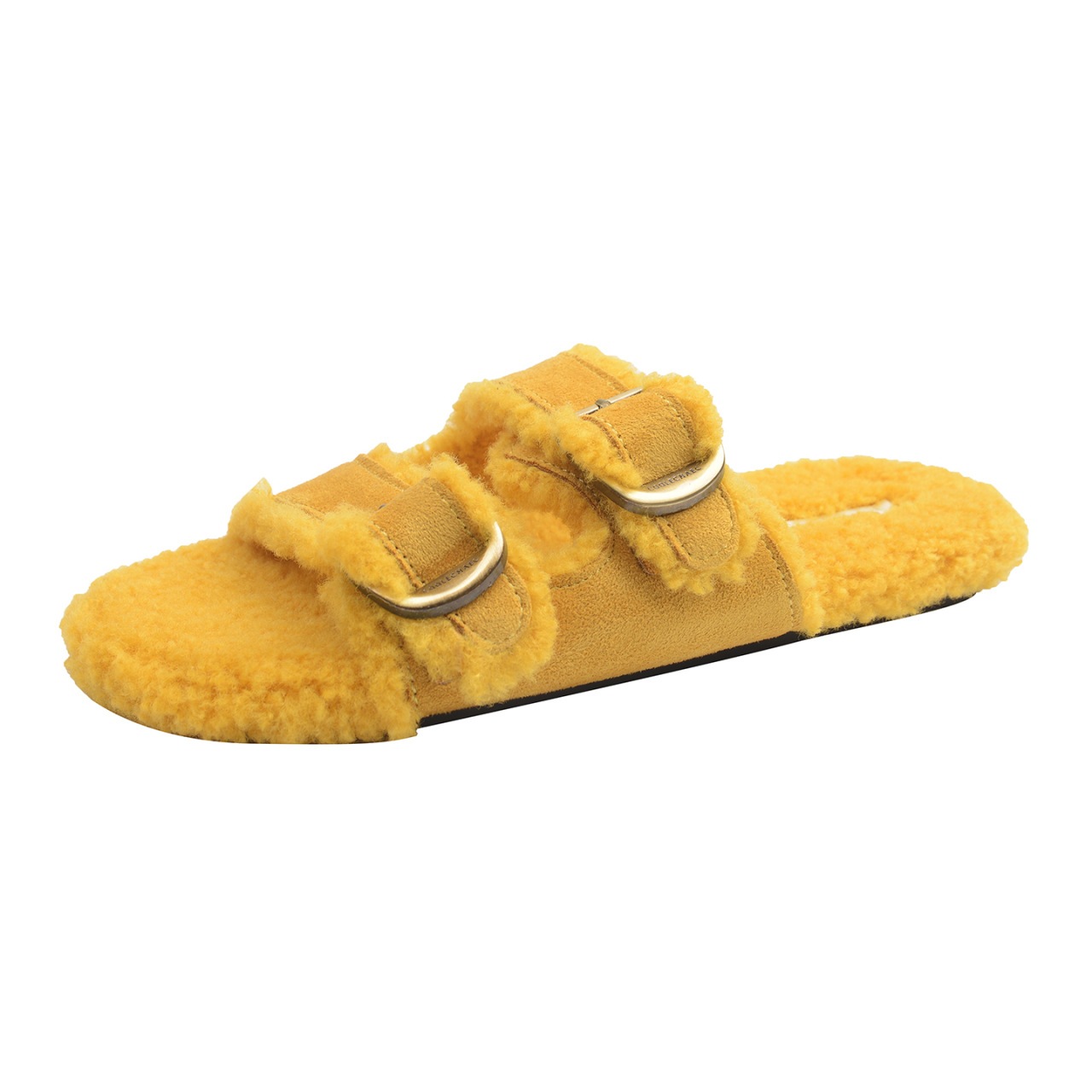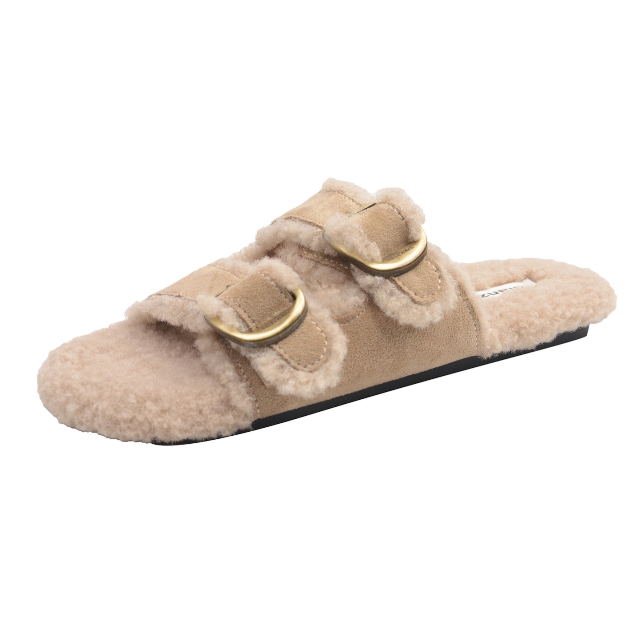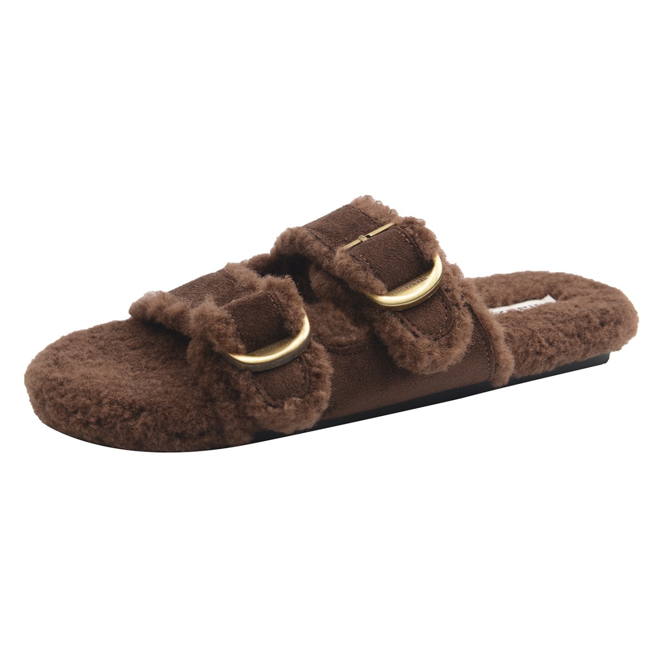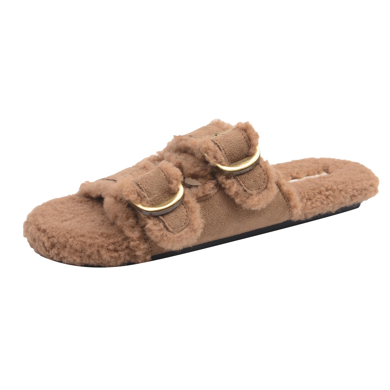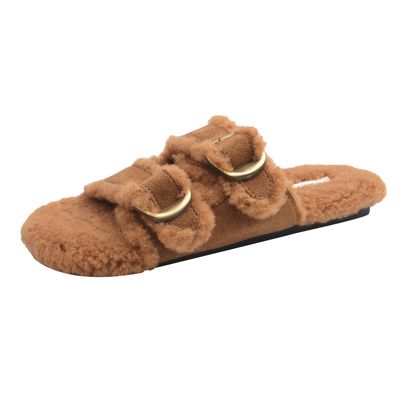 平底毛羽立ちのスリッパの女性はアンドロメダ風の韓系ベルベットの子羊の毛を着てスカートの家の一字綿を引きずっている