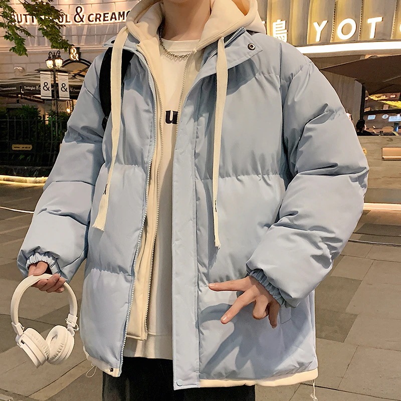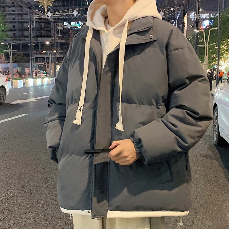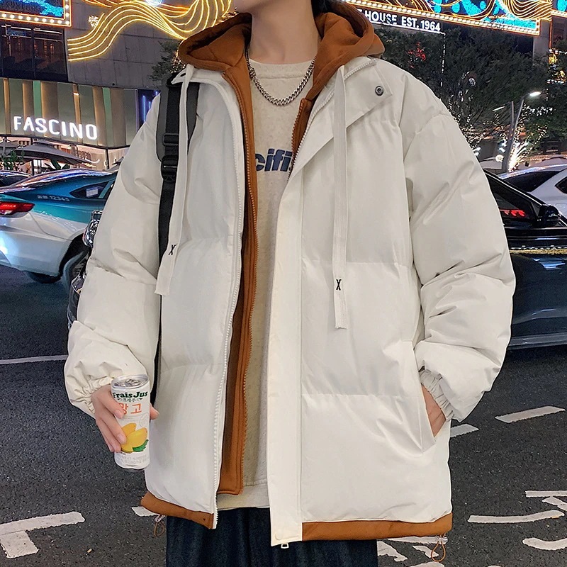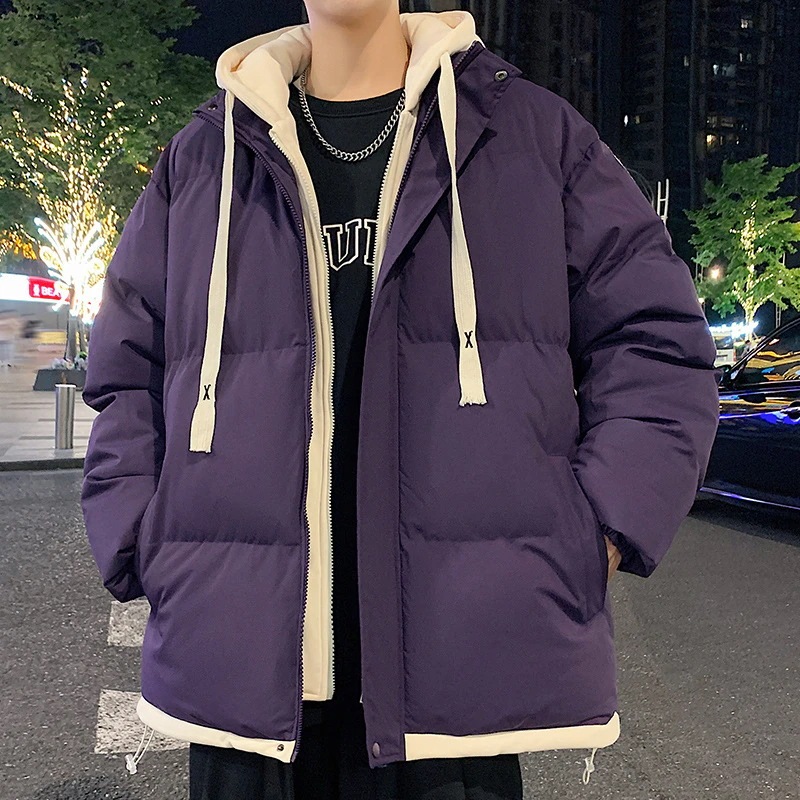 人気アウター 男性冬ファッションファッションファッションブランド厚手綿入れ男性ゆったり帽子保温休暇綿入れコート2枚冬服