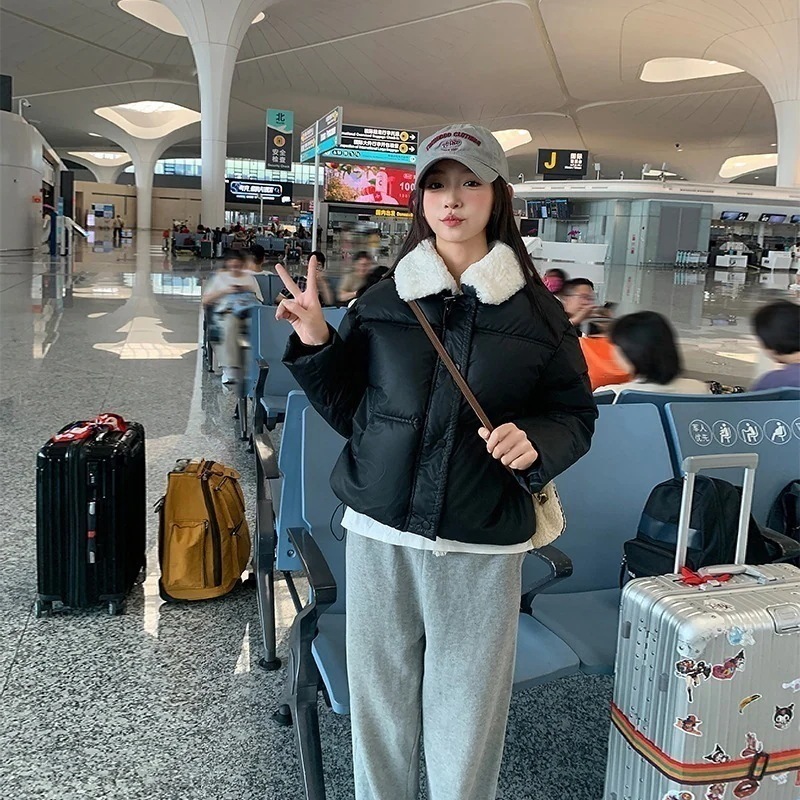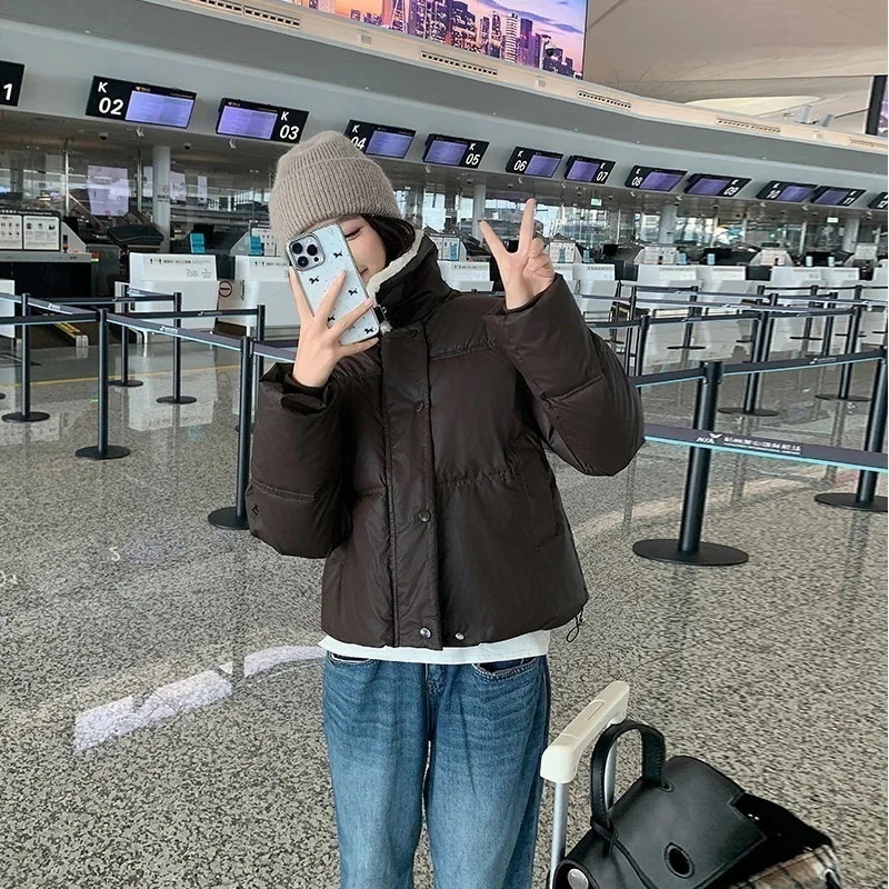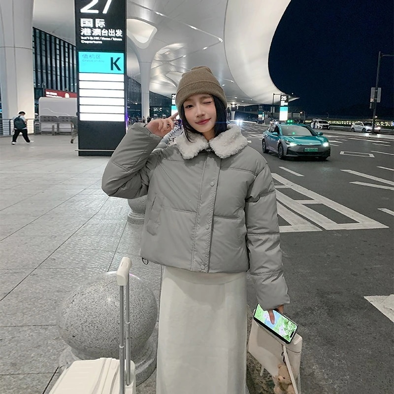アウター 若層人気 厚手 ファーカラー 感検索EC612 中綿コート ショート丈 レディース 学生 ラムズウール 韓国ファッション ウォーム 防寒 韓国風 防水