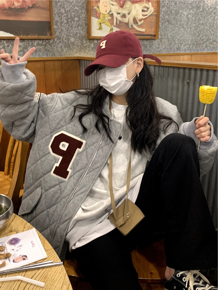 ふっくら中綿 25 ベースボール 韓国防寒あったか暖かいかわいい厚手トレンド羽織るファッション系大人ゆったりカジュアルストリートサイズ丈シルエットレディース黑EC380 あたたかい アウター