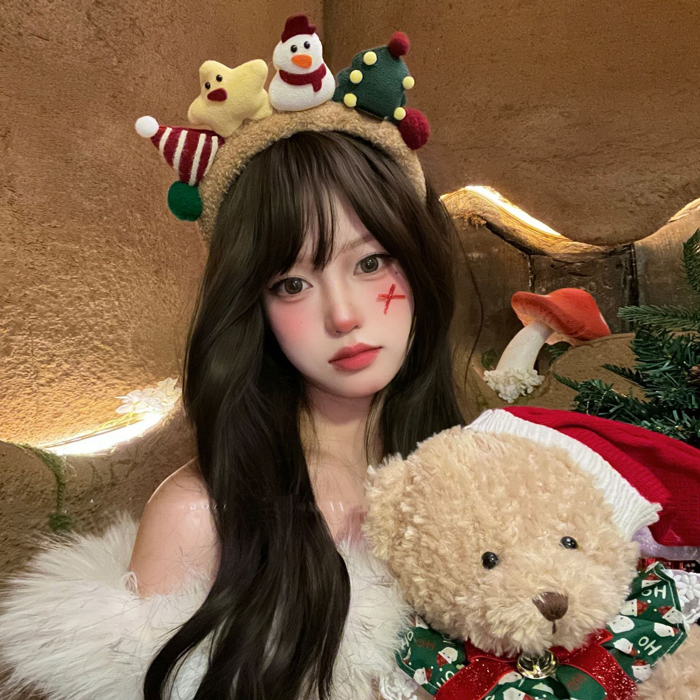 クリスマス かわいい 立体 ウール 雪だるま カチューシャ レディース 2025 新しい 写真を撮り ショー 変 装い ヘアアクセサリー