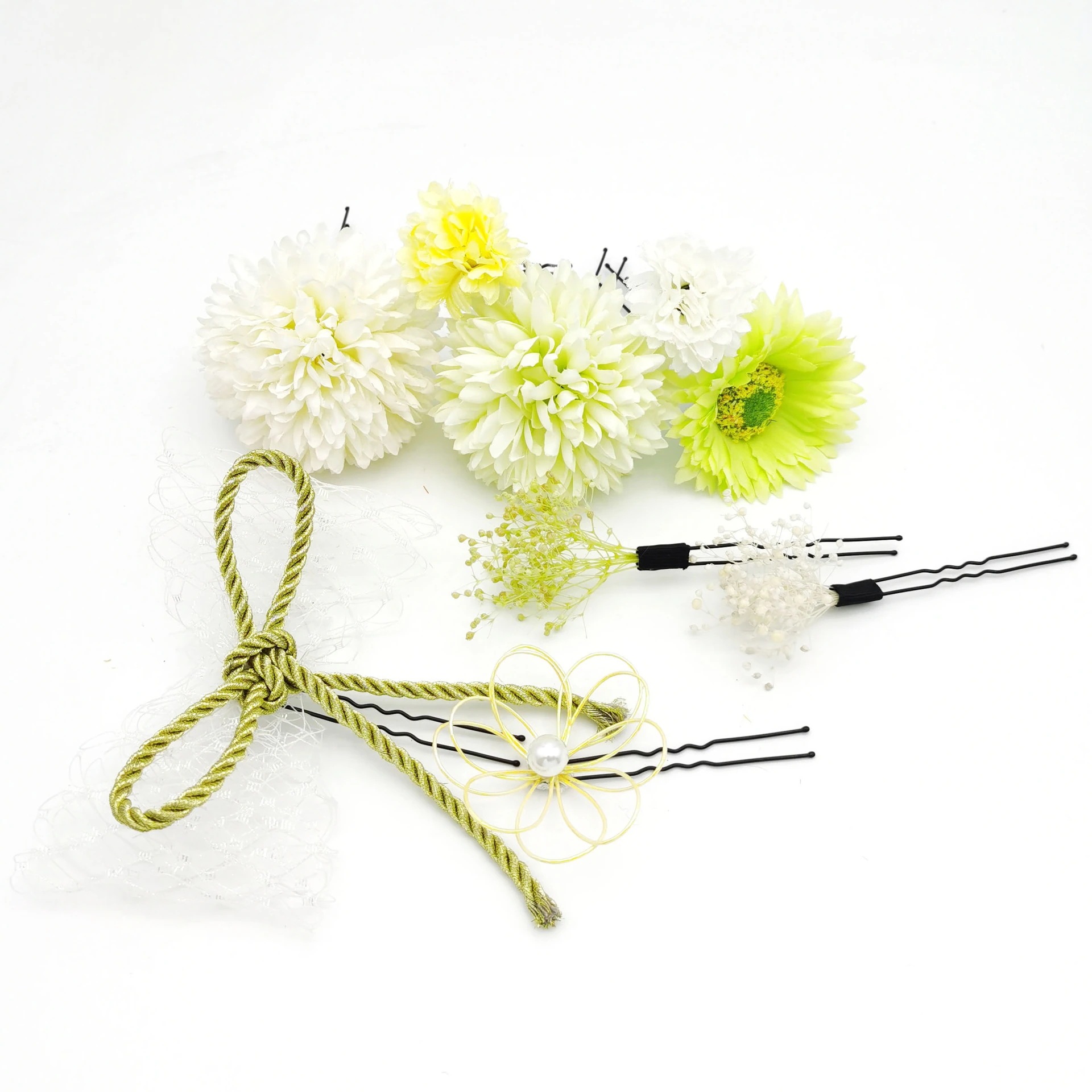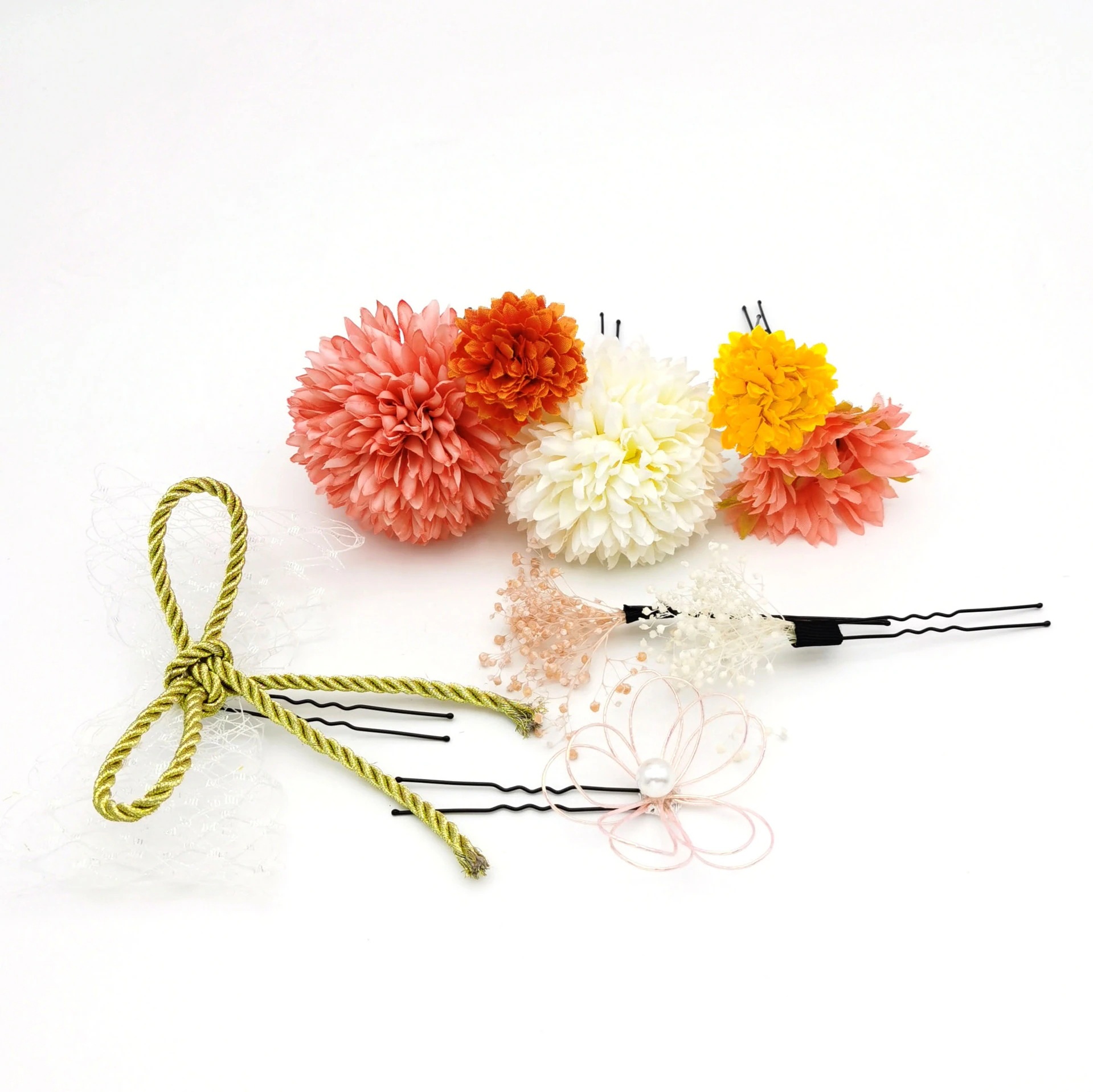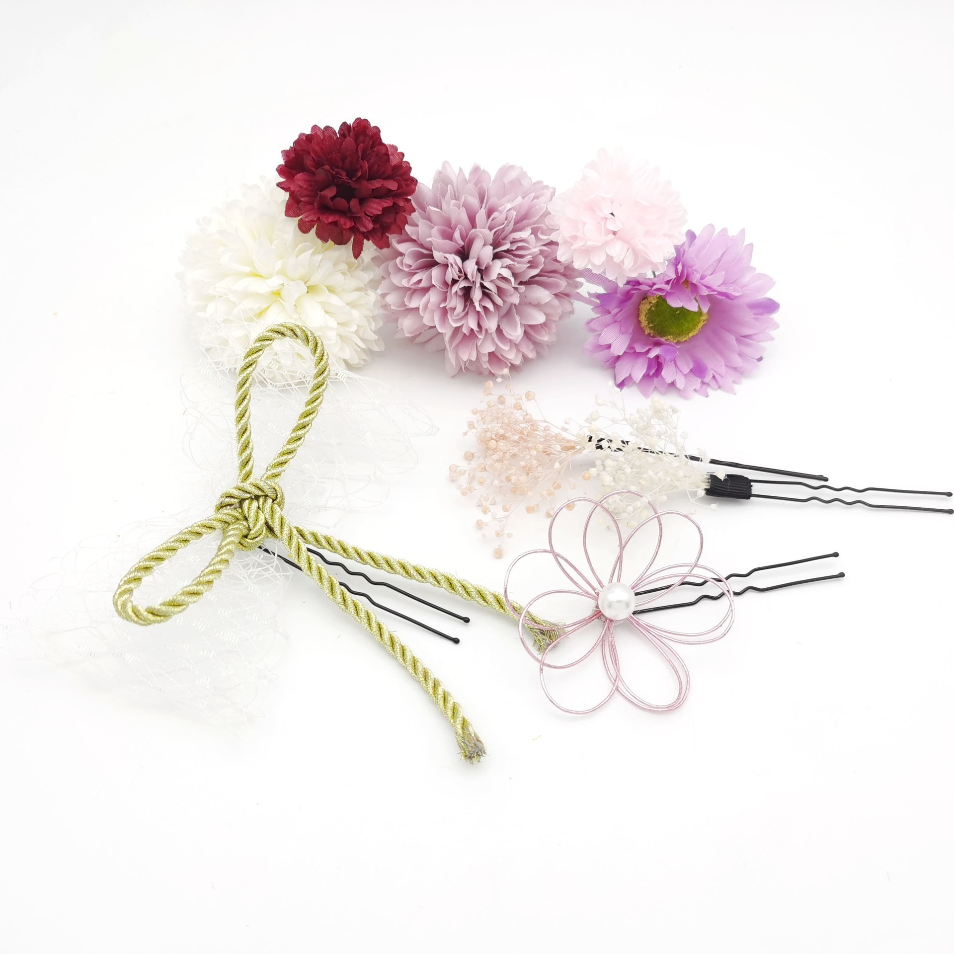和風ヘアアクセサリー 水引細工の結び飾り 造花・プリザーブドフラワー 着物用新作ヘアアクセサリーセット 着物小物