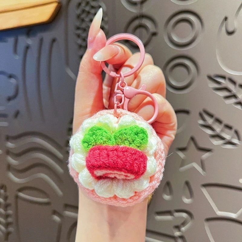 【3日出荷】毛糸編みカラフルケーキ マカロン柄 カップルバッグチャーム キーホルダー