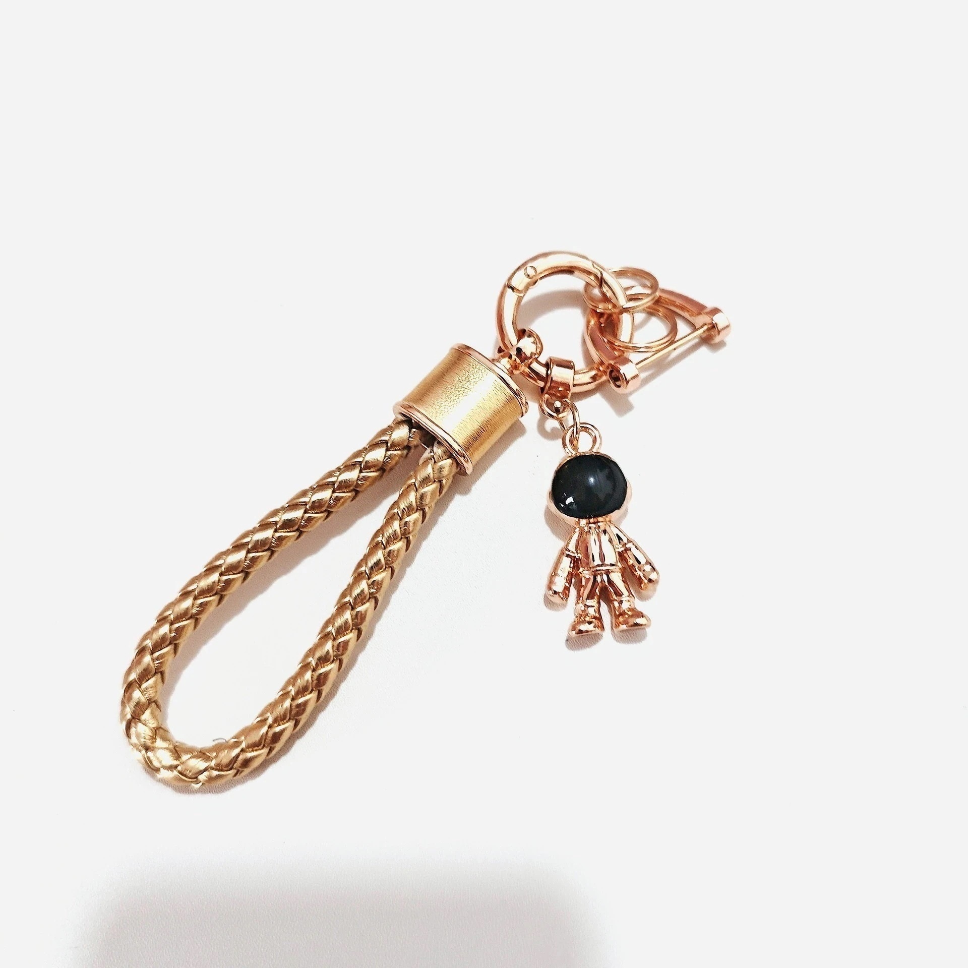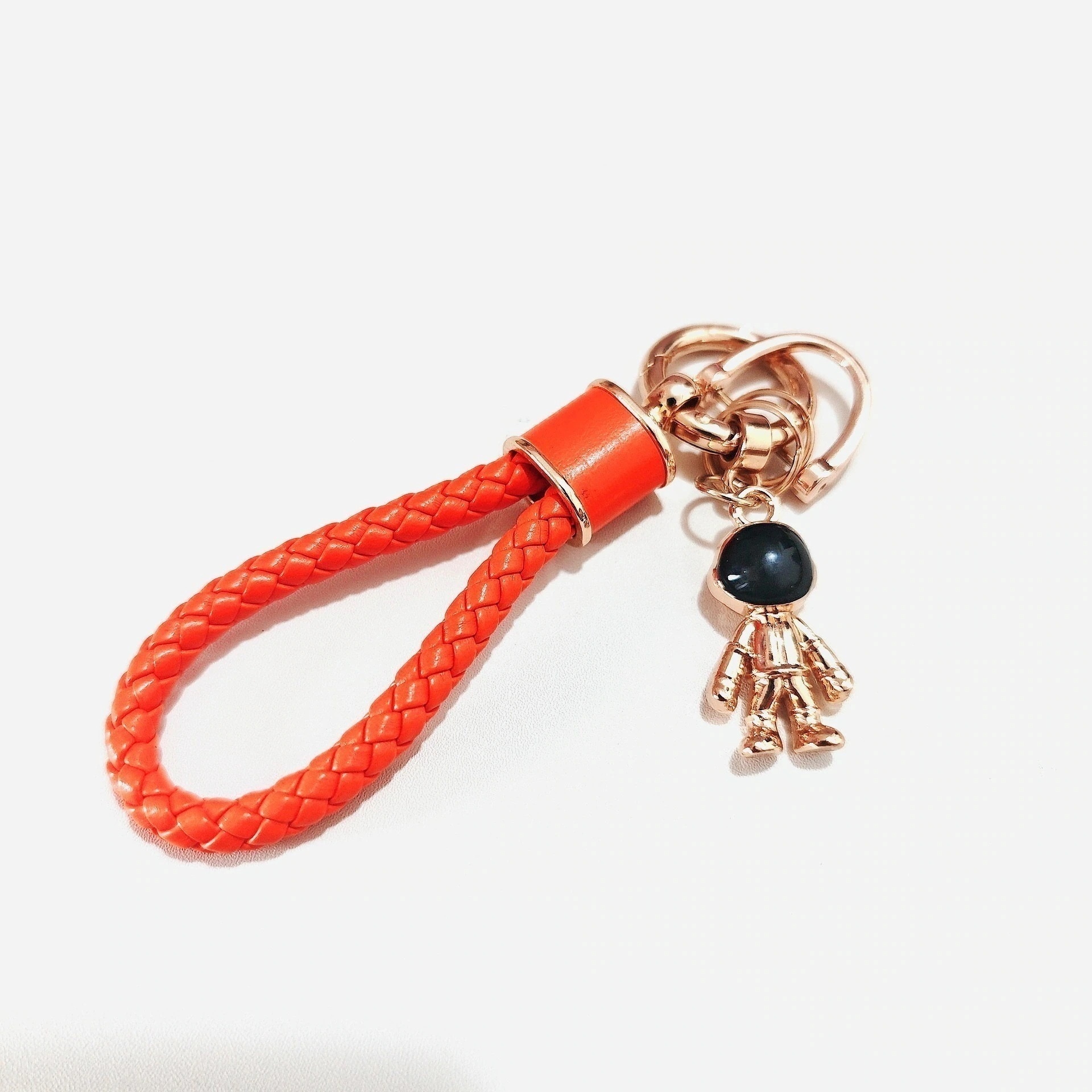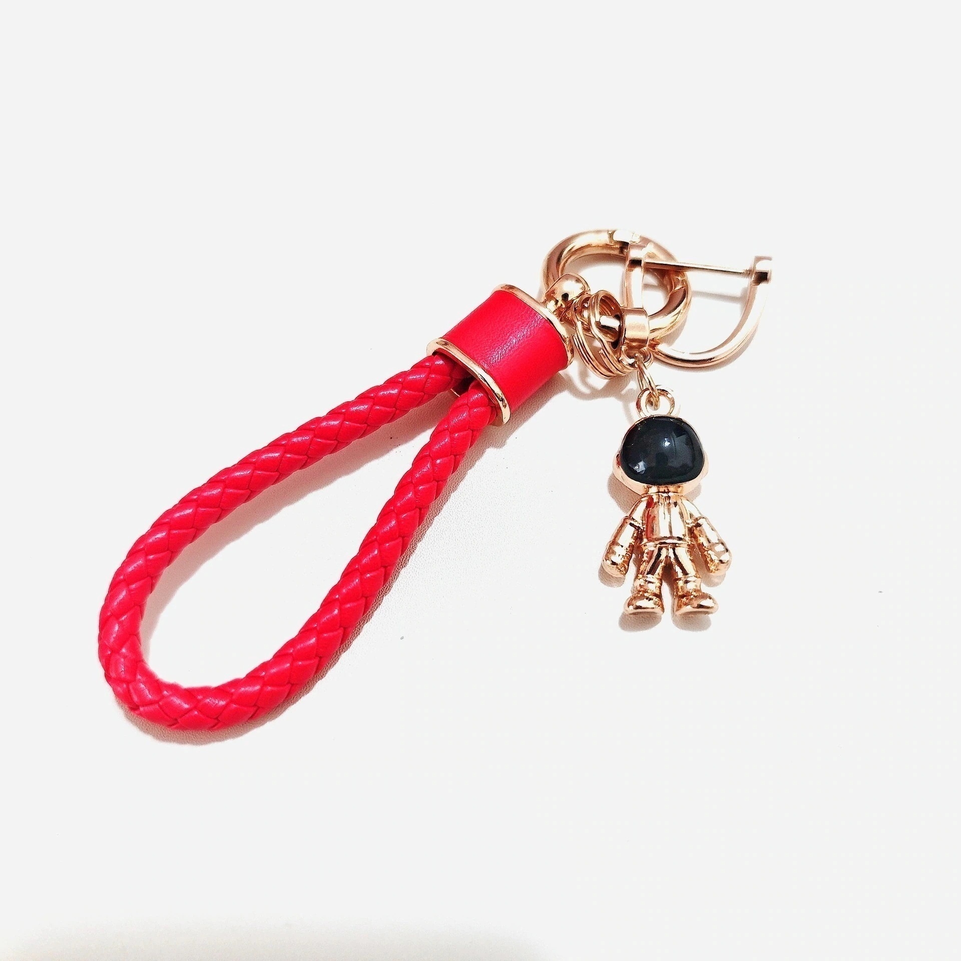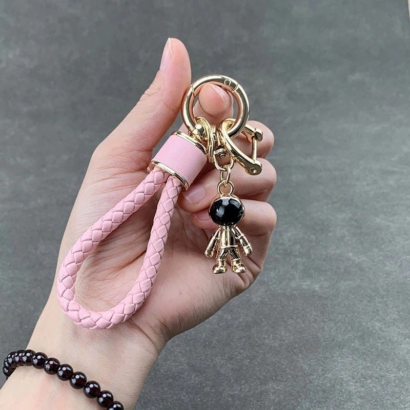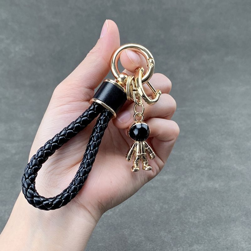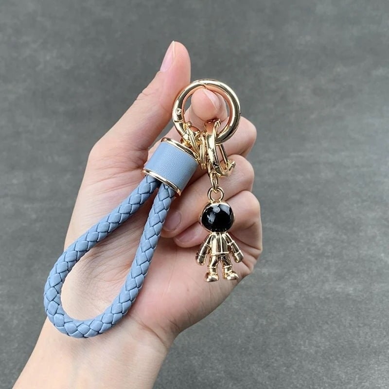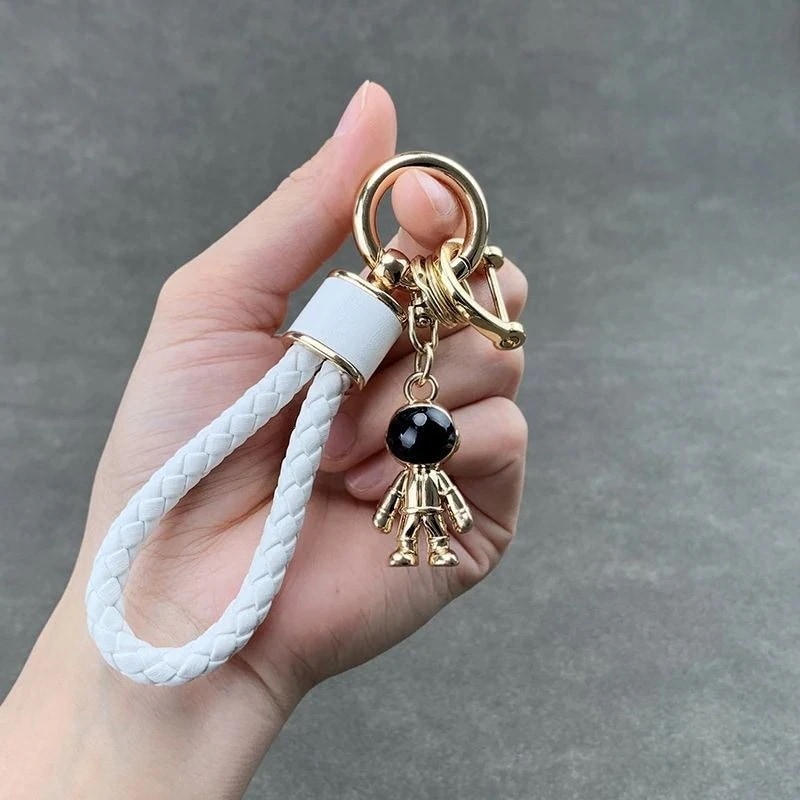 【3日出荷】スペースマン 牛革編みカーキーチェーン カップルモデル 個性的バッグチャーム キーホルダー