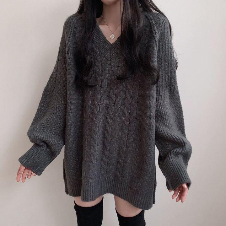 10個セット 2025女性の秋冬ファッション気質ゆったりレトロなだるさ風Vネック麻編み花柄スカート