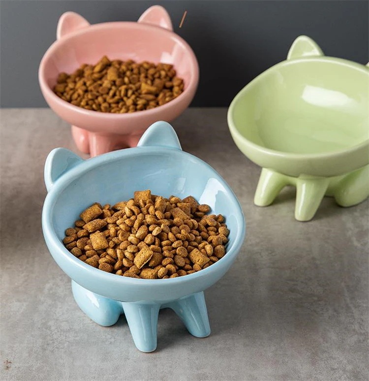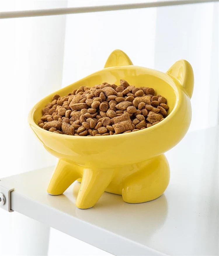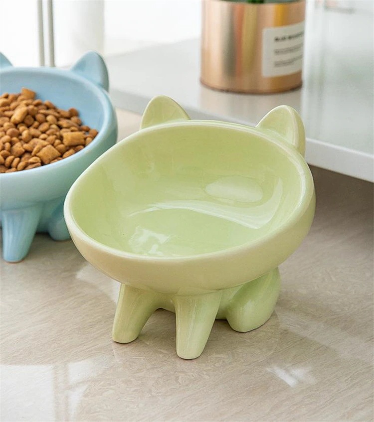 激安セール 猫丼 猫盆地 セラミックボウル 漫画 ペット 斜め口 首ガード 猫食器