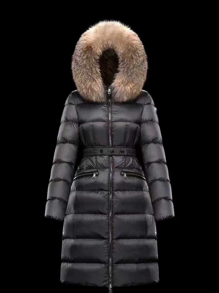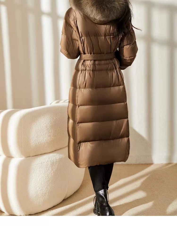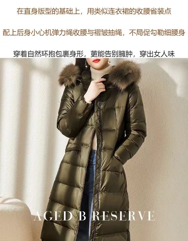 新作冬用ミドル丈ダウンジャケットフード付き大きなファーカラーフォックスファー膝上丈ウエストにフィット厚手バージョン